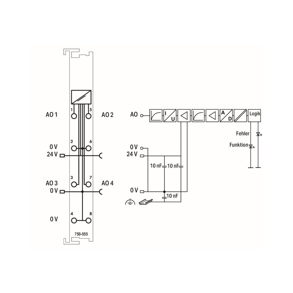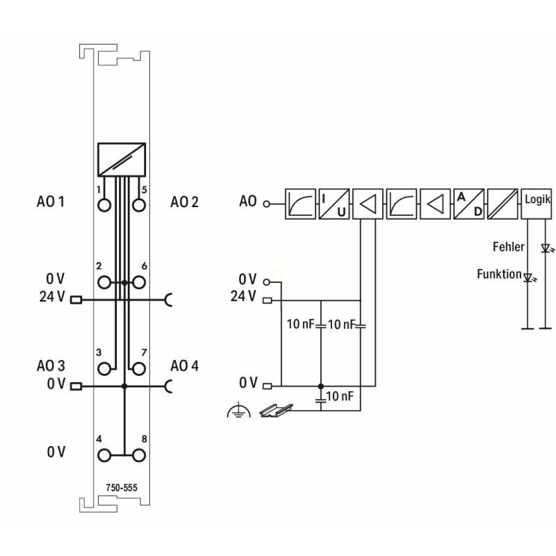 4 csatornás analóg kimenet, 4 … 20 mA, 750-555 WAGO