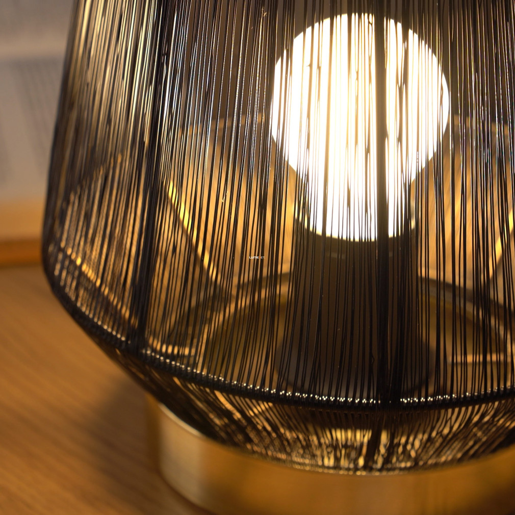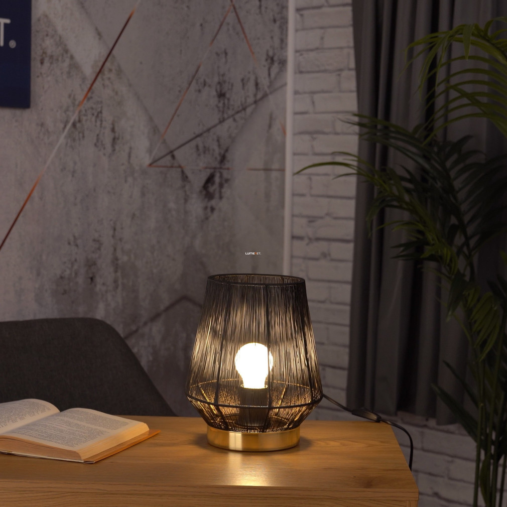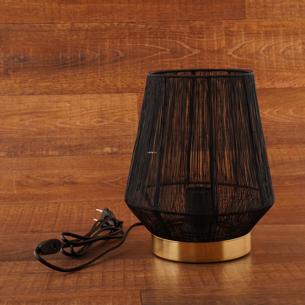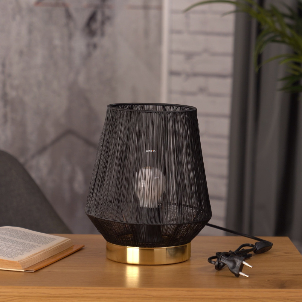 Acél zsinóros hangulatlámpa fekete, 26 cm, arany színű talapzat - Escandidos Eglo 99808, 1xE27 foglalattal