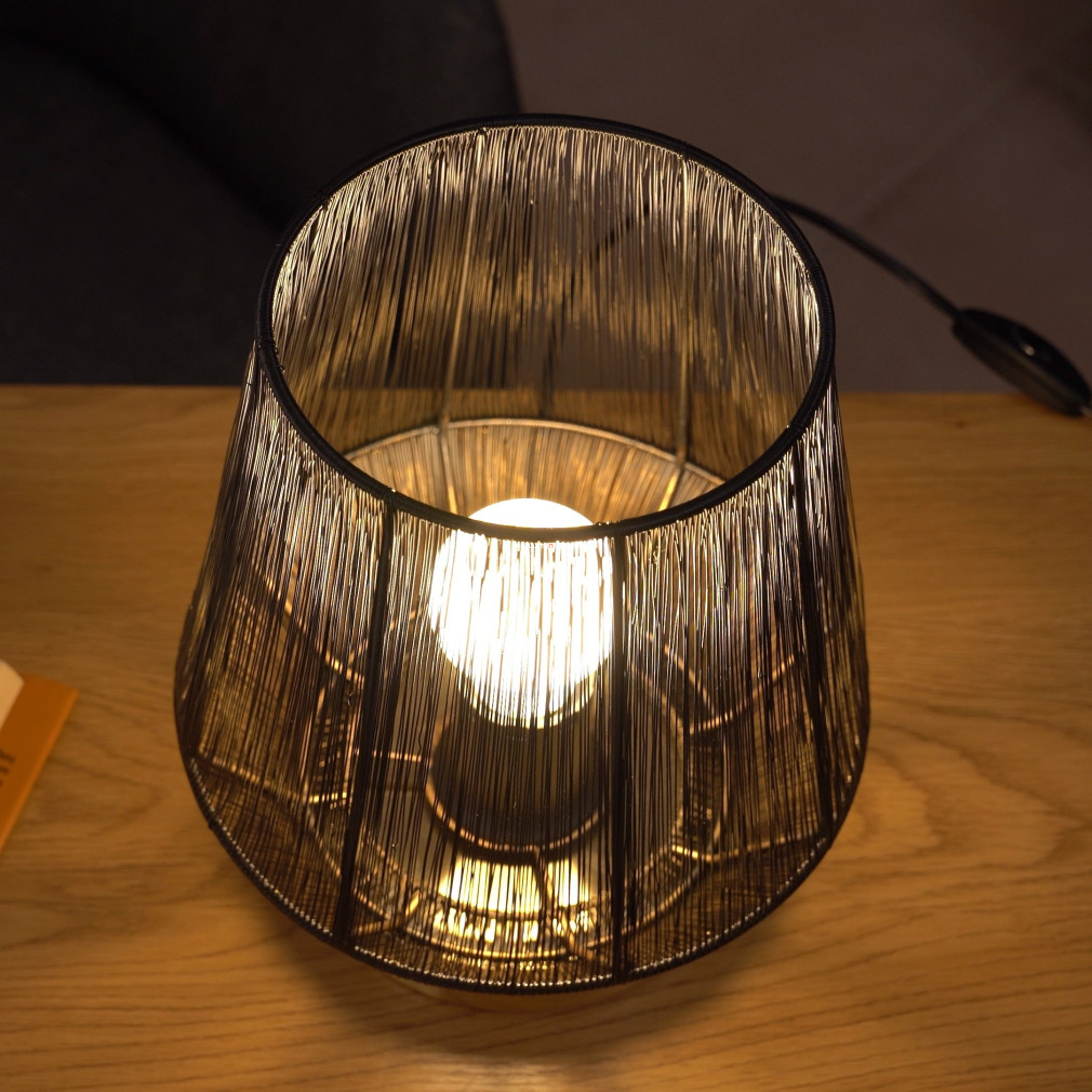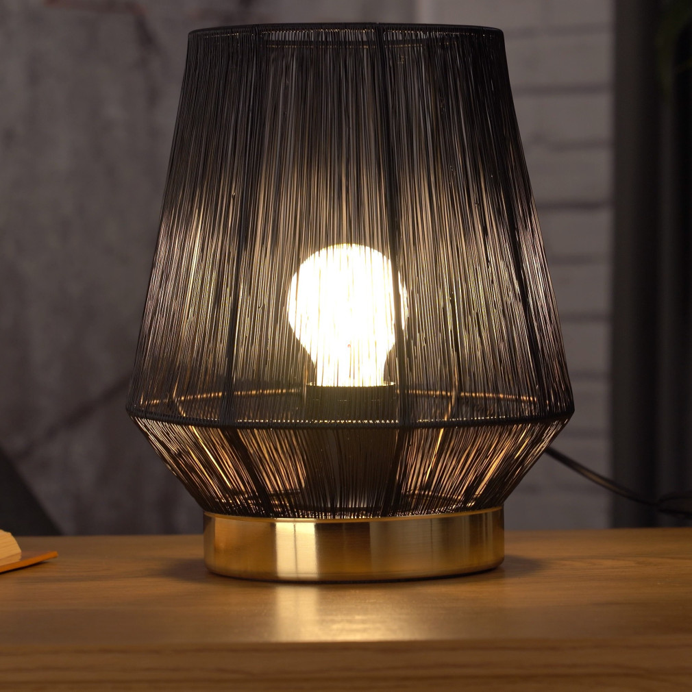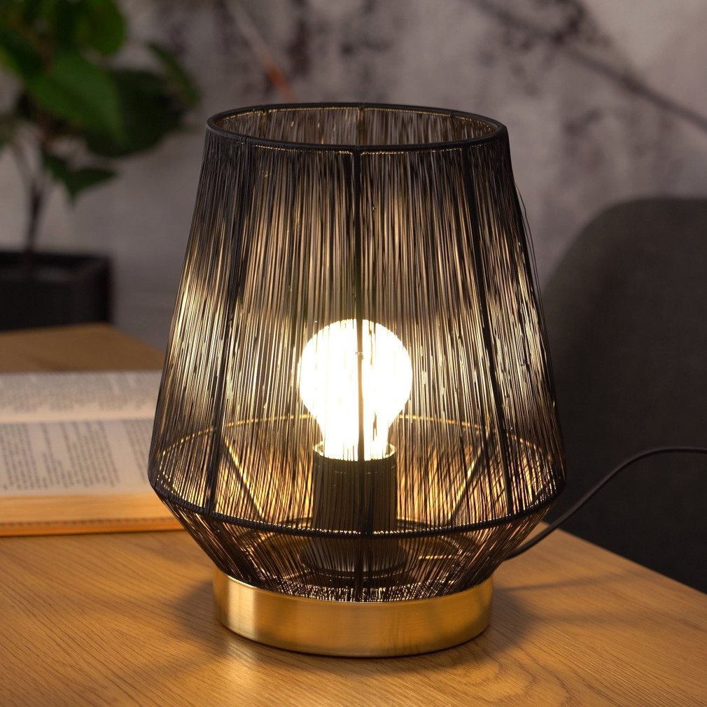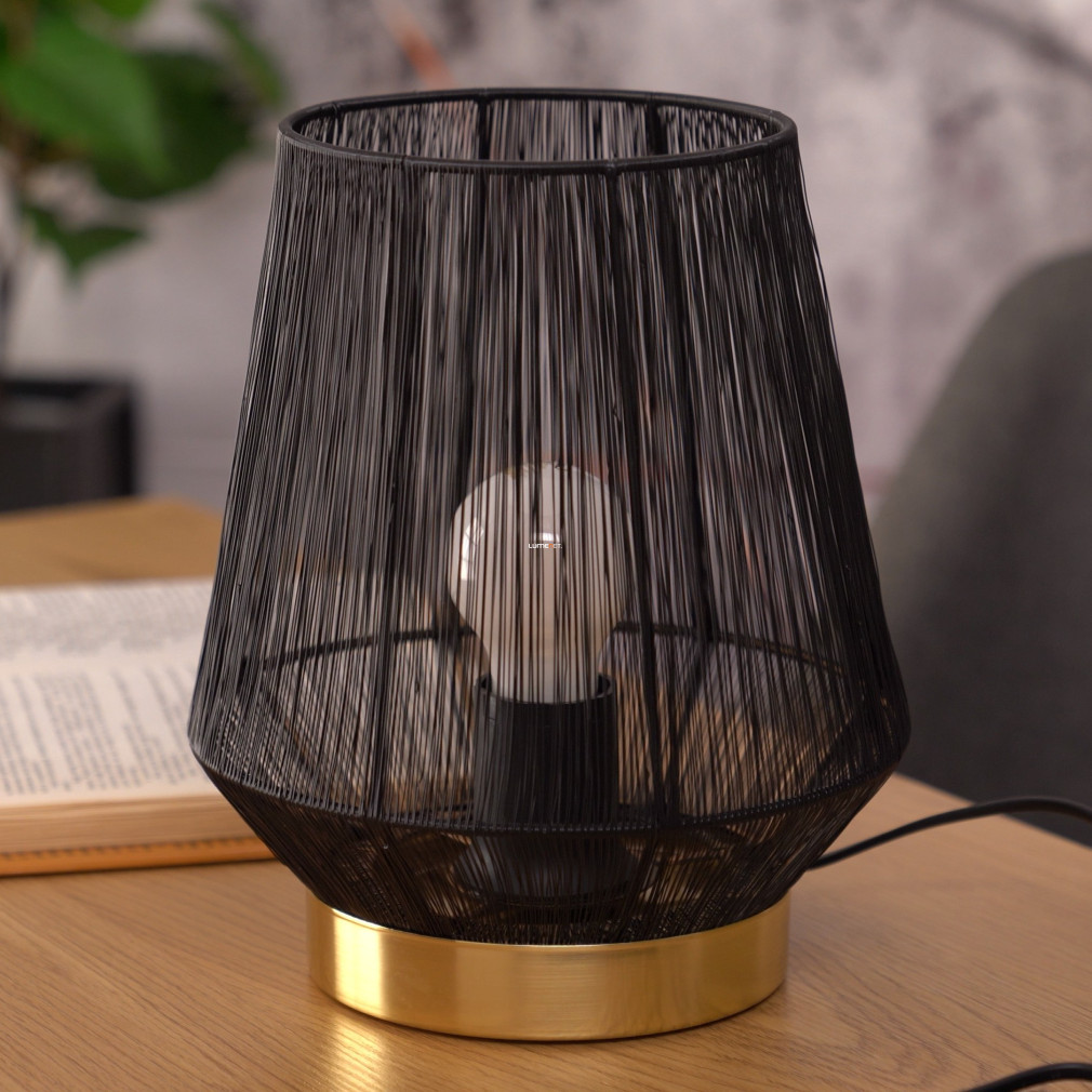 Acél zsinóros hangulatlámpa fekete, 26 cm, arany színű talapzat - Escandidos Eglo 99808, 1xE27 foglalattal