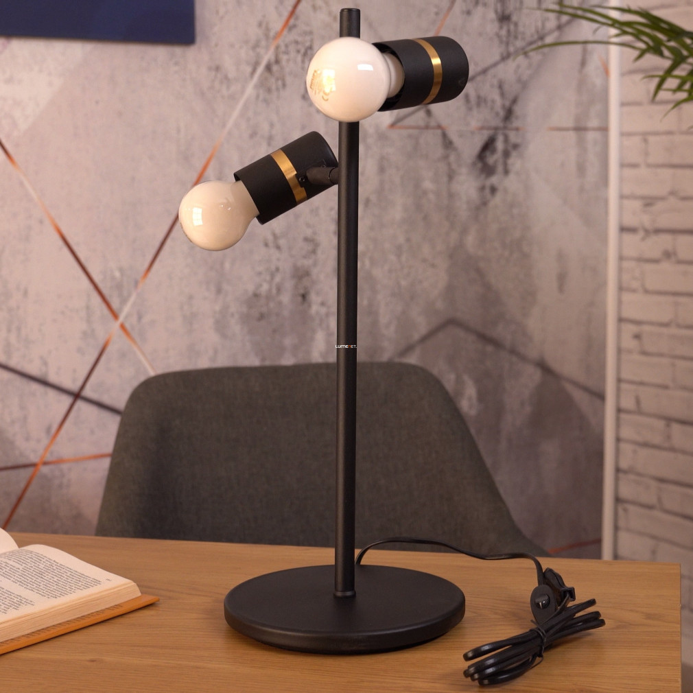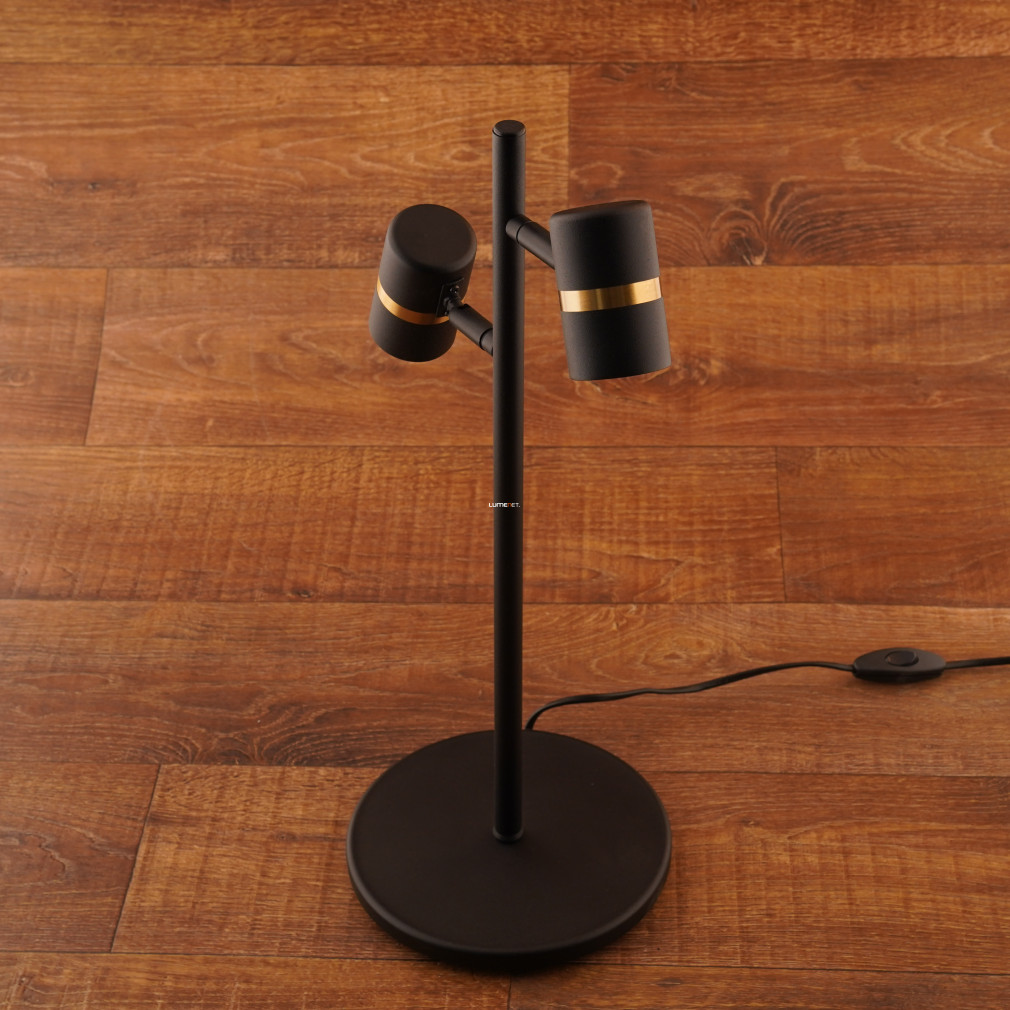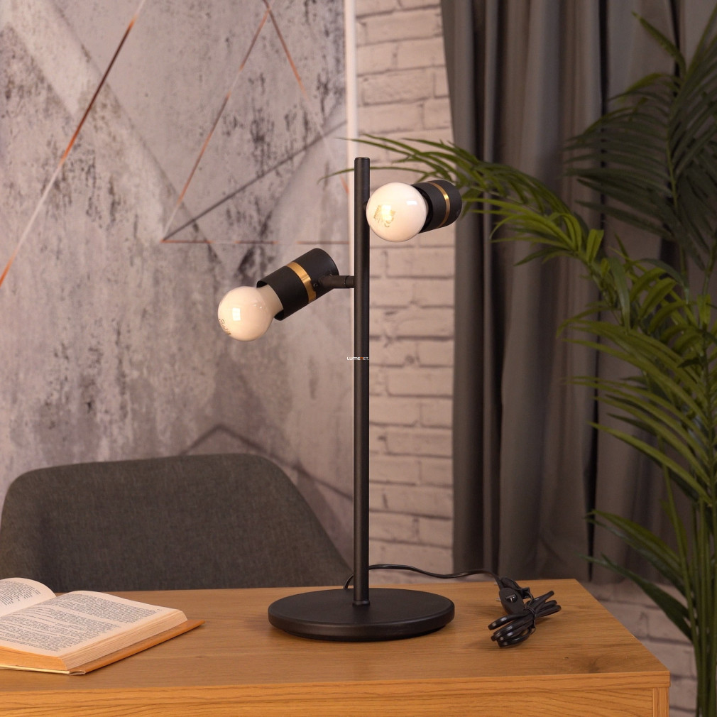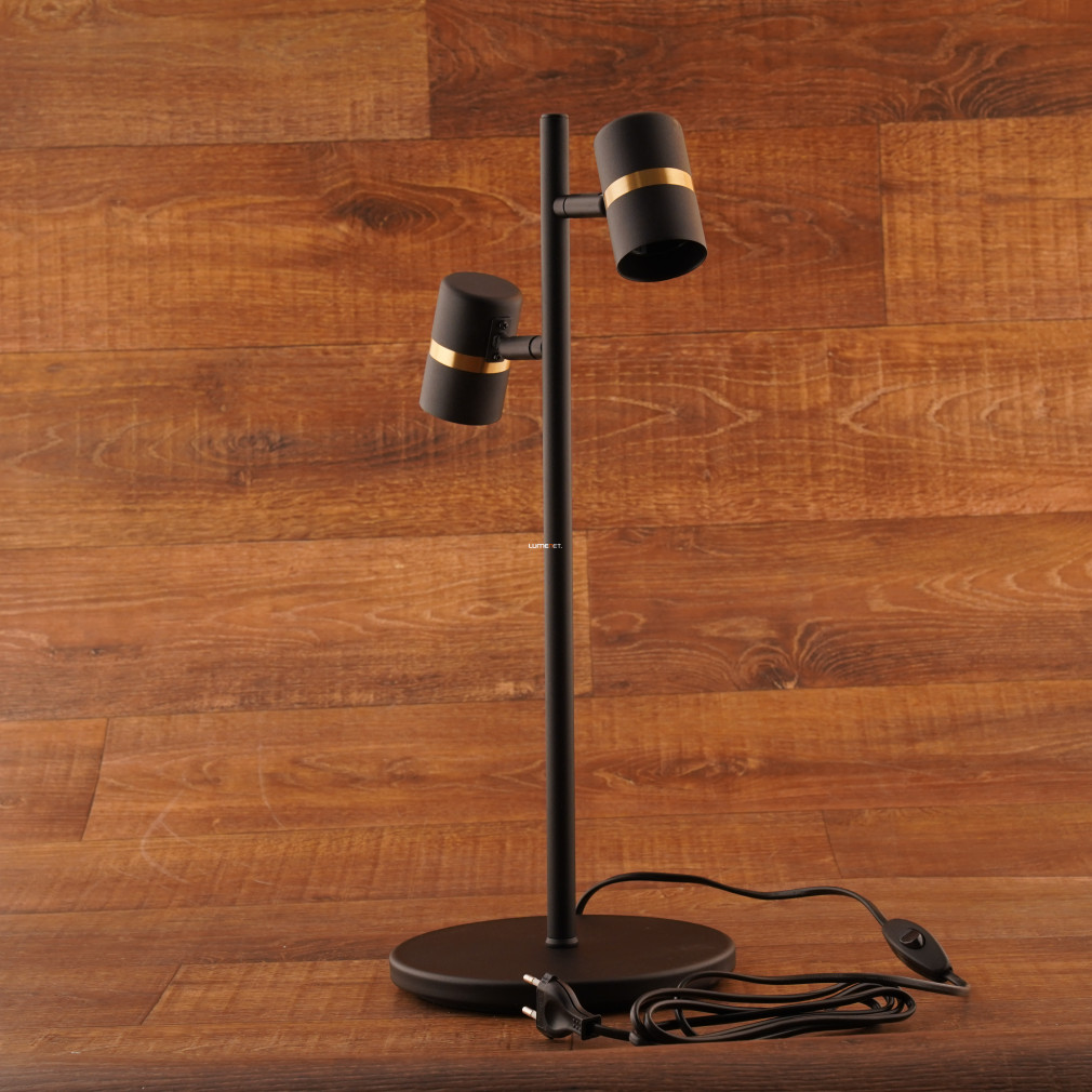 Az Állítható asztali lámpa két foglalattal, 50 cm - Lurone Eglo 900178 modell két E27 foglalattal rendelkezik, így lehetővé teszi különböző típusú cserélhető fényforrások alkalmazását. A lámpatest acélból készült, felülete fekete és arany színű, amely modern megjelenést biztosít. Az állítható kivitel révén a világítási irány könnyen módosítható, a zsinórkapcsoló pedig kényelmes kezelhetőséget nyújt. A termék 4,42 kg tömegű, IP20 védettségi szinttel rendelkezik, így beltéri használatra alkalmas. A lámpa méretei: 205 mm hosszúság, 50 mm szélesség és 500 mm magasság. A csomagolás mérete 20x20x50 cm. A lámpatest nem tartalmaz fényforrást, így a fényáram, fényszín, teljesítmény és színhőmérséklet a behelyezett izzóktól függően változhat. A termék gyártója az EGLO.