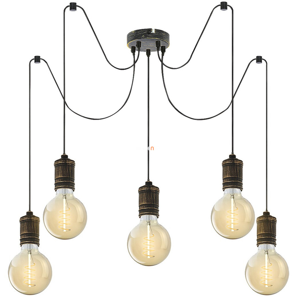 A Fidel Rábalux 3218 állítható loft csillár egy vintage stílusú, zsinóros függesztett lámpa, amely ötvözi a klasszikus formavilágot a modern funkcionalitással. A lámpatest öt darab E27-es foglalattal rendelkezik, így a fényforrások cserélhetők, lehetővé téve a fényáram, színhőmérséklet és teljesítmény testre szabását. A fémből készült, arany és antikolt színű csillár átmérője 600 mm, maximális magassága 1500 mm, így nagyobb belmagasságú helyiségekben is ideális elhelyezést biztosít. Az IP20-as védettségi besorolás beltéri használatra teszi alkalmassá. A termék tömege 1,05 kg, csomagolási méretei 15x15x16 cm. A csillár nem tartalmaz fényforrást, így a megfelelő izzók külön választhatók hozzá. A Rábalux által gyártott modell logisztikai kódja 3218.