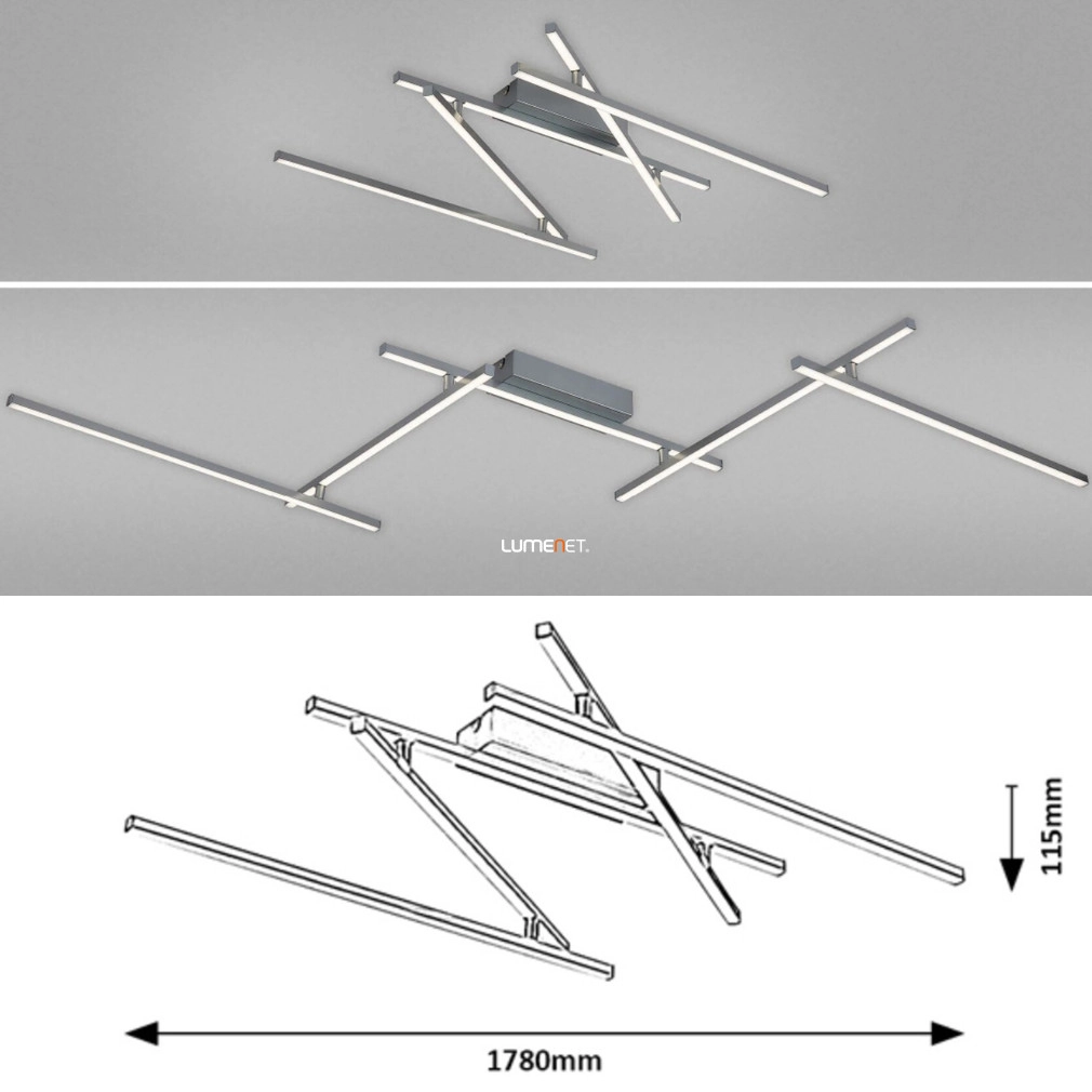 A Negan Rábalux 71020 állítható mennyezeti LED lámpa modern, minimál stílusban készült, 178 cm hosszúságú fémből és műanyagból álló kivitelben. A beépített 40 W teljesítményű LED modul hidegfehér fényt biztosít, amelynek színhőmérséklete 4000 K, fényárama pedig eléri a 2460 lument. A lámpatest IP20 védettséggel rendelkezik, így beltéri használatra alkalmas. Az átlagos élettartama 20 000 óra, a fényforrást tartalmazza, így azonnal üzembe helyezhető. Az ezüst-fehér színkombináció és a letisztult forma elegáns megjelenést kölcsönöz bármely helyiségnek. A termék tömege 0,98 kg, magassága 11,5 cm, a csomagolás méretei pedig 15 x 12 x 56 cm.