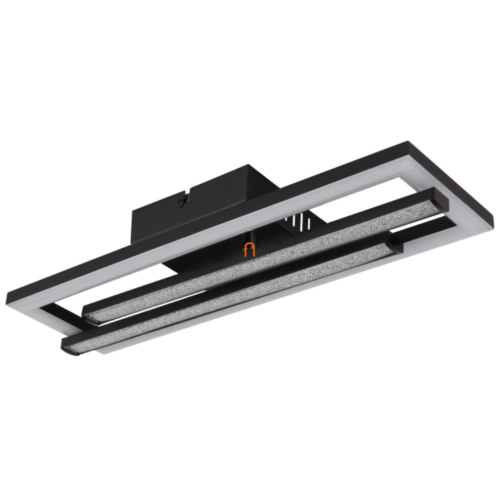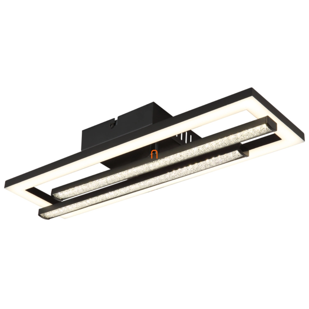 Az Állítható mennyezeti LED lámpa fekete színben kristály berakással, a Globo Highway 672843S modellje, modern lakásvilágítási megoldást kínál. A lámpatest matt fekete műanyagból készült, műanyag kristály berakással, amely elegáns megjelenést biztosít. A beépített 24 W teljesítményű LED modul 1420 lumen fényáramot bocsát ki, 4000 Kelvin színhőmérsékleten, hidegfehér fénnyel. A lámpa 230 V névleges feszültséggel működik, IP20 védettségi besorolással rendelkezik, így beltéri használatra alkalmas. Méretei 400 mm hosszúság, 375 mm szélesség és 63 mm magasság, súlya 1,1 kg. A termék tartalmazza a fényforrást, és logisztikai kódja 672843S.
