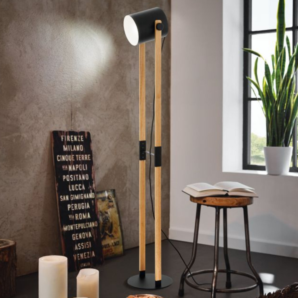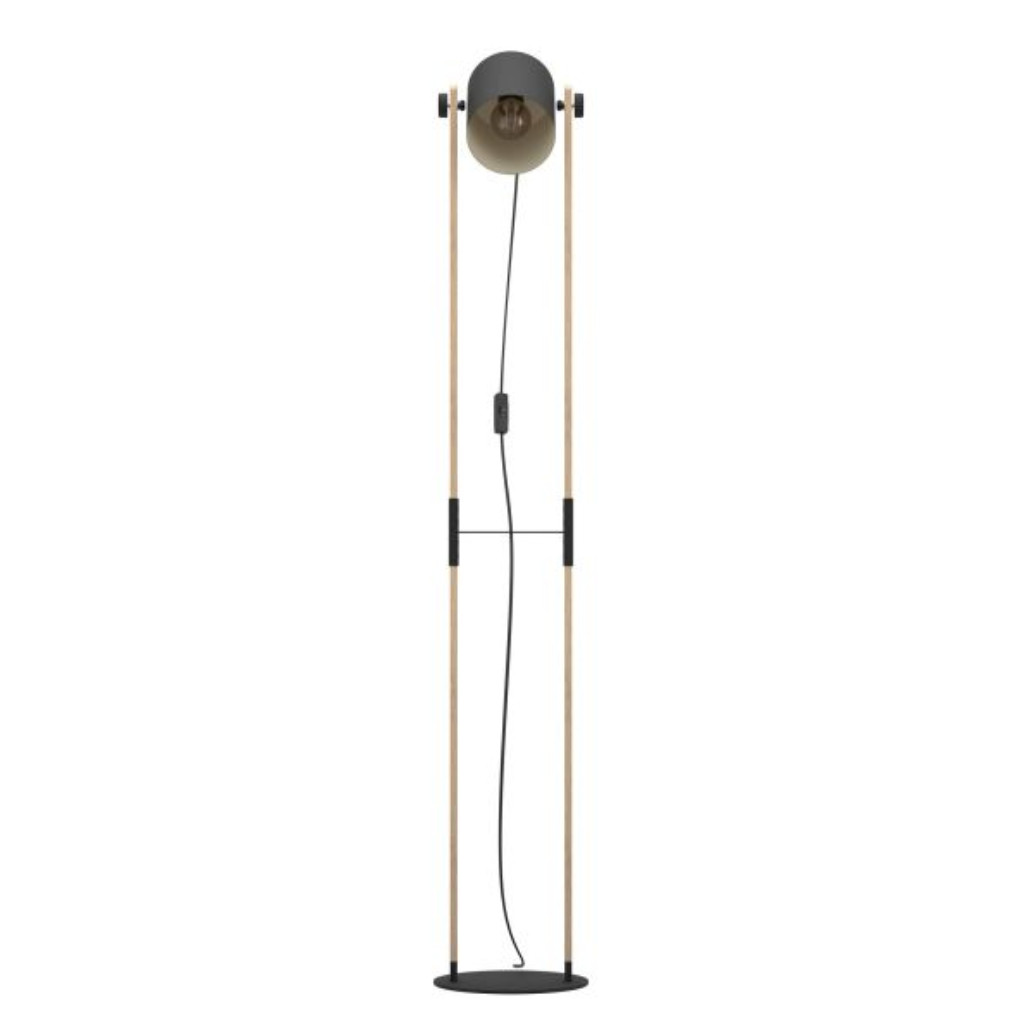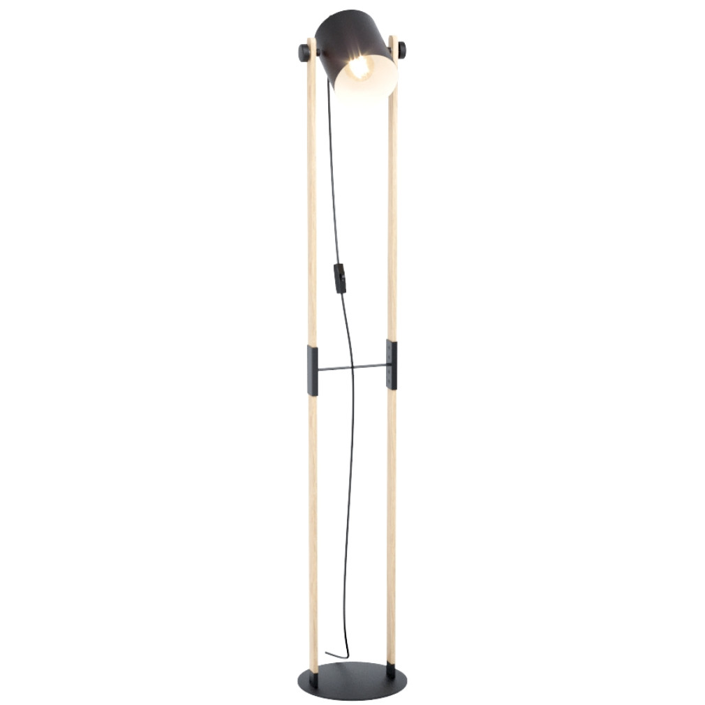 Állólámpa, 140 cm, fekete-bézs-fa színű - Hornwood Eglo 43521, zsinórkapcsoló, 1xE27 foglalattal