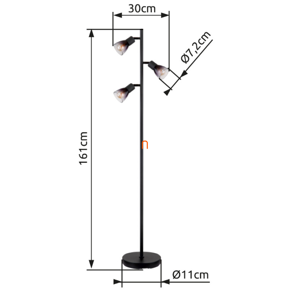 Állólámpa, 161 cm - Satella Globo 54312-3S, talpkapcsoló, üveg, 3xE14 foglalattal, 230 V