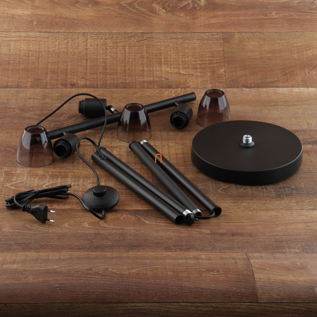 A Satella Globo 54312-3S állólámpa 161 cm magasságával és modern, matt fekete, füstszínű kialakításával illeszkedik a lakásvilágítási megoldások közé. A lámpatest három E14 foglalattal rendelkezik, amelyekbe cserélhető fényforrások helyezhetők, így a fényáram, színhőmérséklet és teljesítmény egyedileg szabályozható. Talpkapcsolóval vezérelhető, névleges feszültsége 230 V. Anyaga fém és üveg, védettségi besorolása IP20. A termék nem tartalmaz fényforrást. Méretei: hosszúság 300 mm, szélesség 220 mm, magasság 1610 mm, a kábel hossza 1,8 méter. A logisztikai kód 54312-3S, tömege 3,23 kg. A gyártó a Globo.