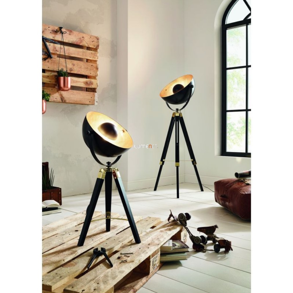 Állólámpa, 164 cm, fekete-arany színű - Covaleda Eglo 49618, zsinórkapcsoló, fa, 1xE27 foglalattal