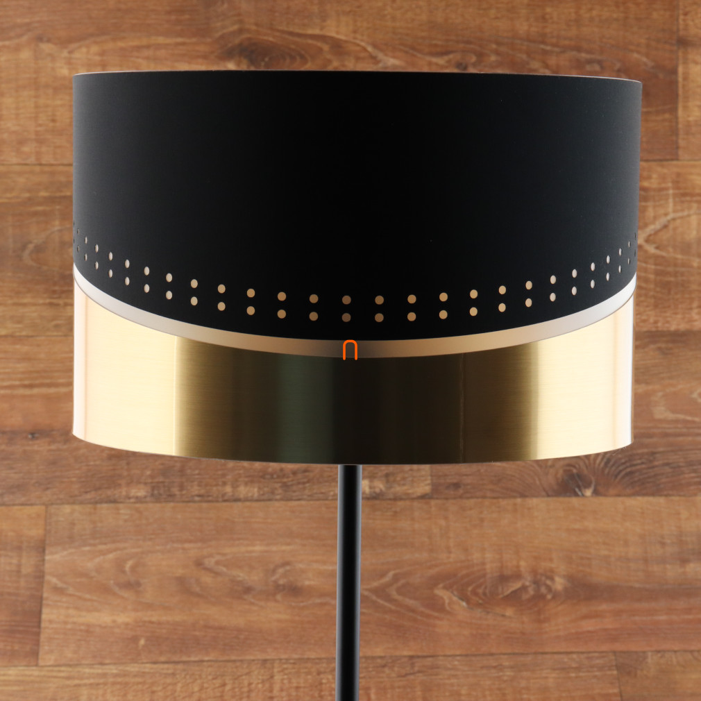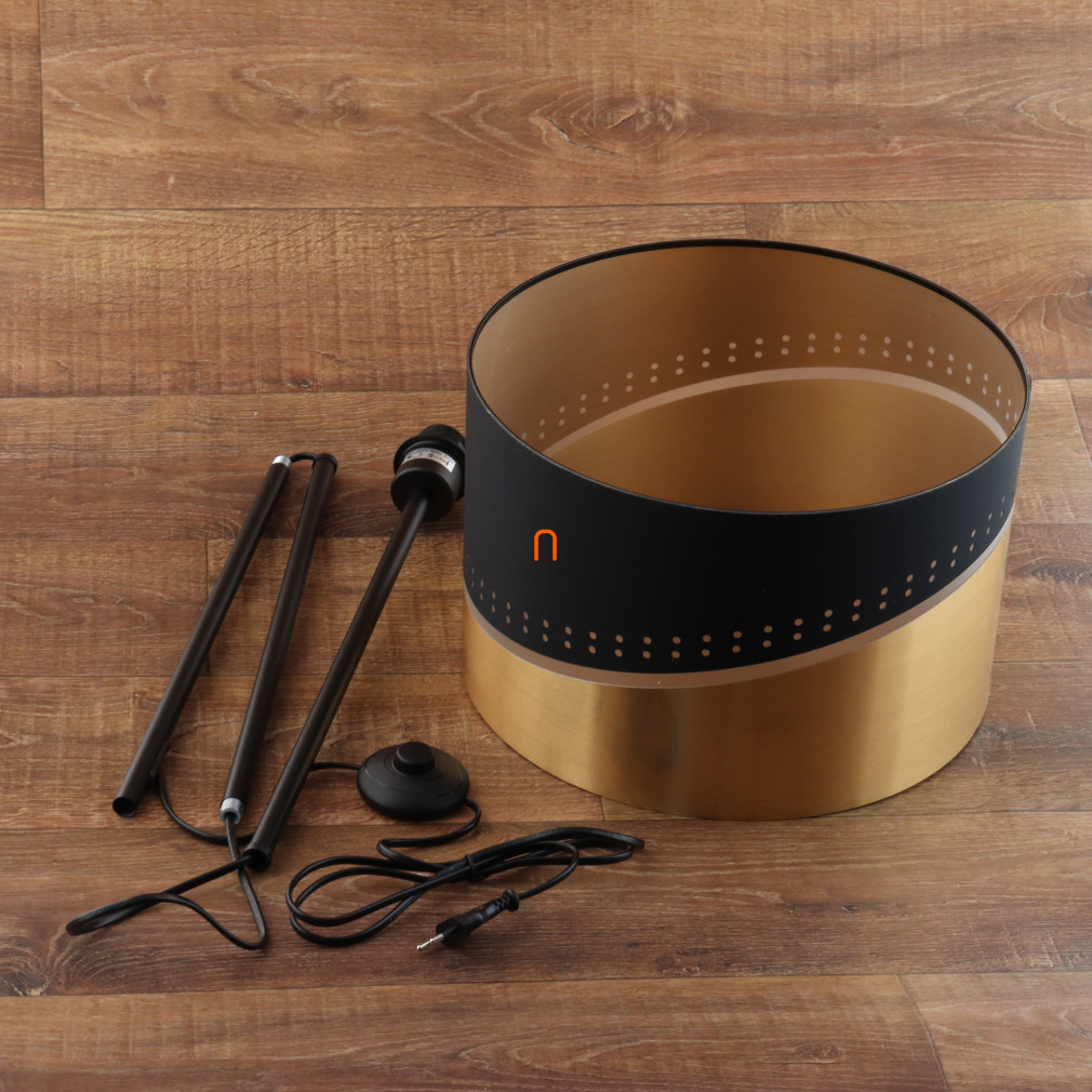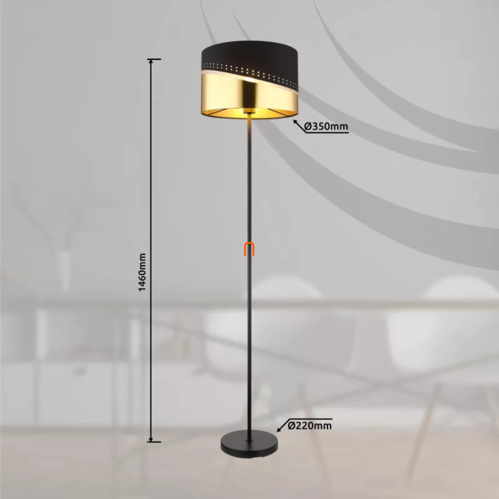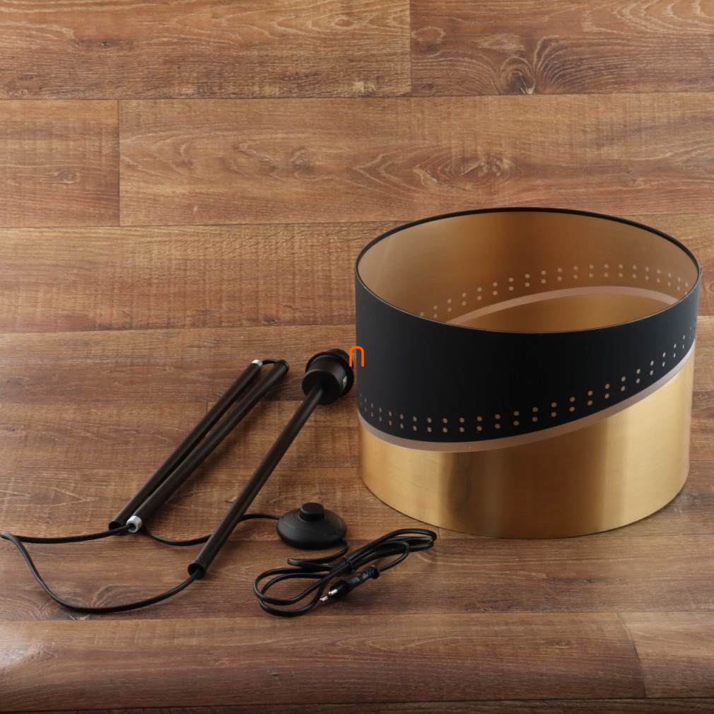 Az Or Globo 54046S állólámpa modern megjelenésével és fekete-arany színű kivitelével emeli a lakótér stílusát. A 146 cm magas lámpatest stabil, 3,92 kg-os tömeggel rendelkezik, anyaga fém, textil és műanyag kombinációja. Egy darab E27 foglalattal szerelt, amelyhez cserélhető fényforrás használható, így a fényáram, színhőmérséklet és teljesítmény szabadon választható. A lámpa 230 V névleges feszültségen üzemel, IP20 védettségi szinttel rendelkezik, így beltéri használatra alkalmas. A textil lámpabura átmérője 35 cm, a kábel hossza 1,8 méter, a kapcsolás pedig talpkapcsolóval történik a kényelmes működtetés érdekében. A termék nem tartalmaz fényforrást. Csomagolási méretei: 38x38x27 cm. A Globo által gyártott állólámpa logisztikai kódja: 54046S.