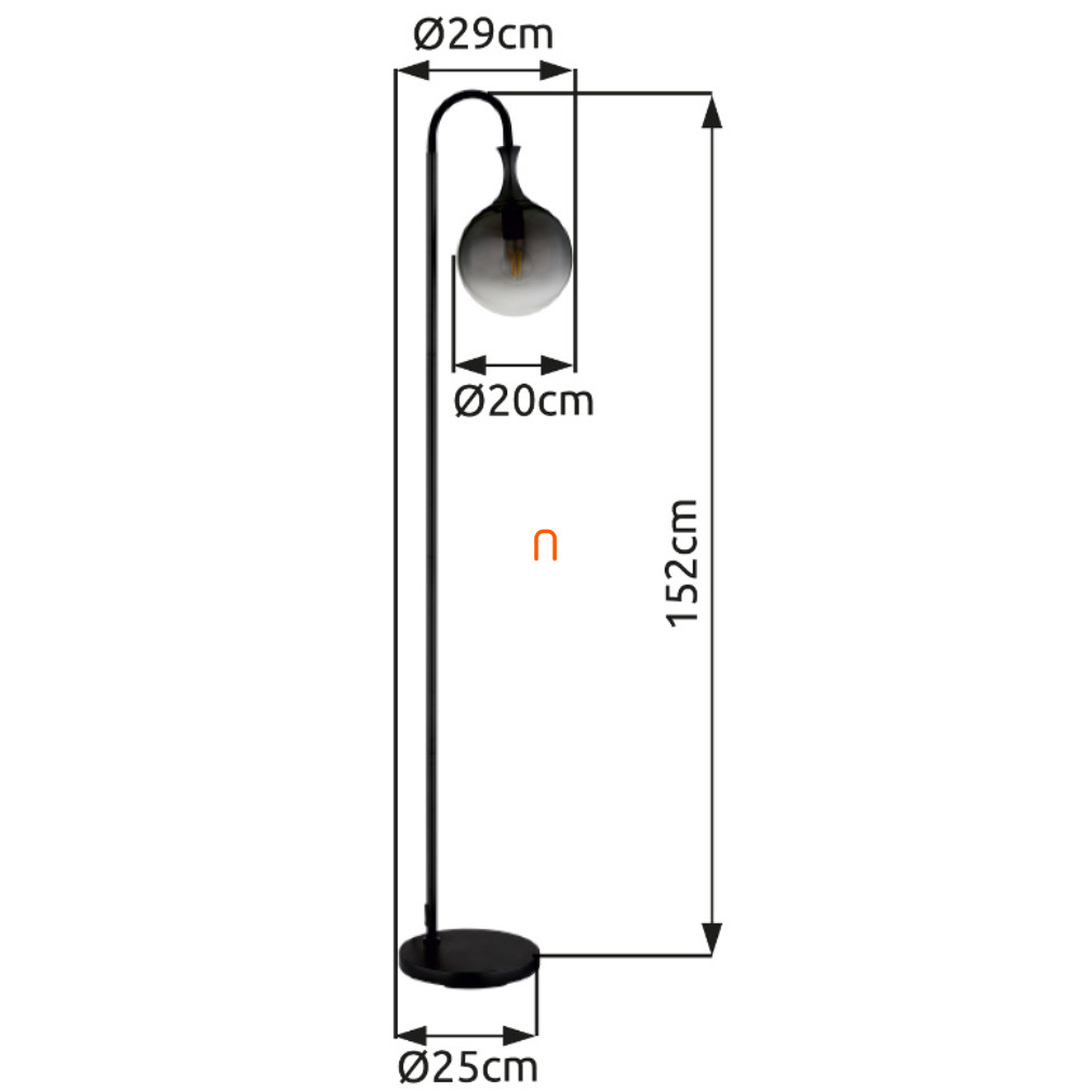 Állólámpa füstszínű üveg búrával 152 cm - Dalton Globo 15885S, talpkapcsoló, üveg, 1xE27 foglalattal, 230 V