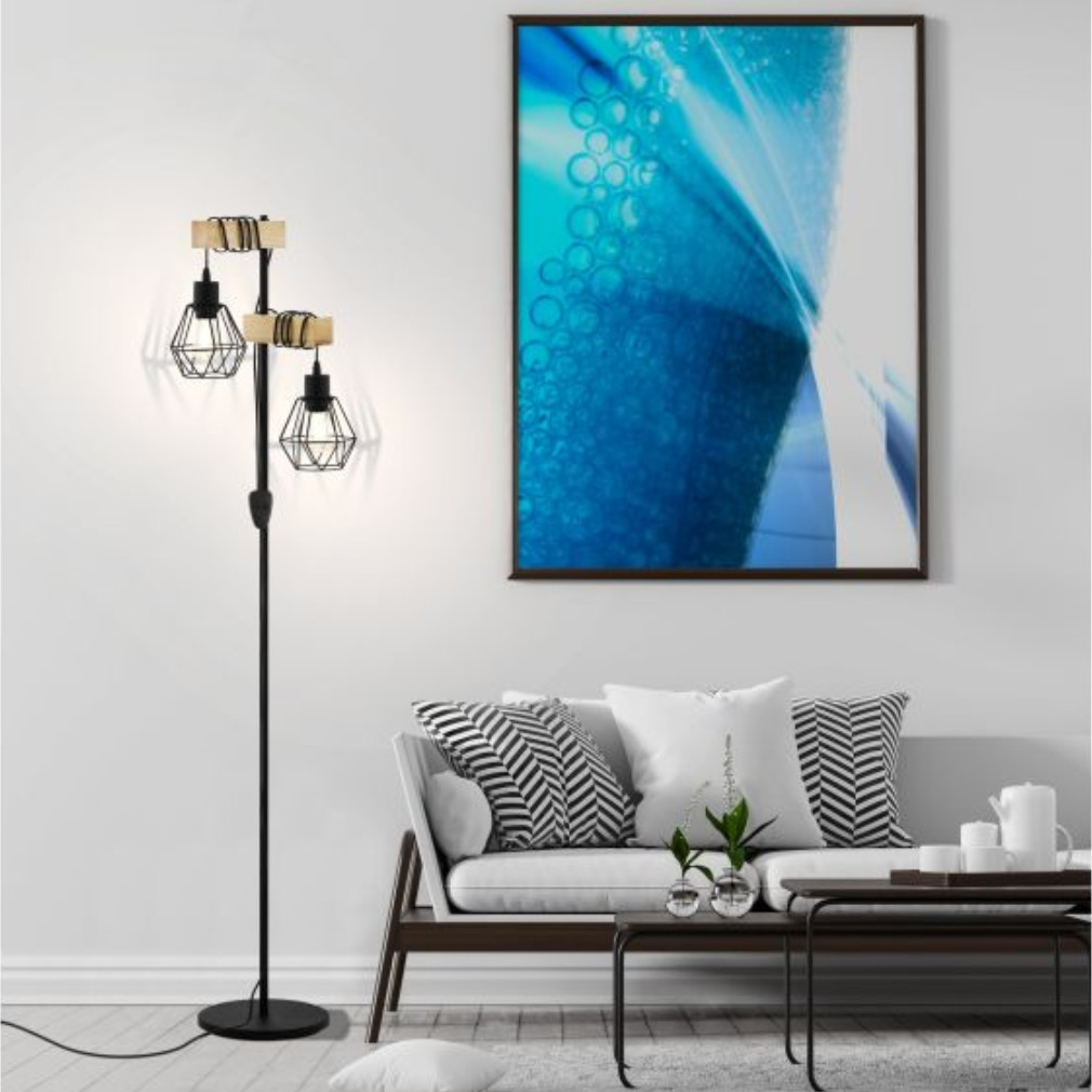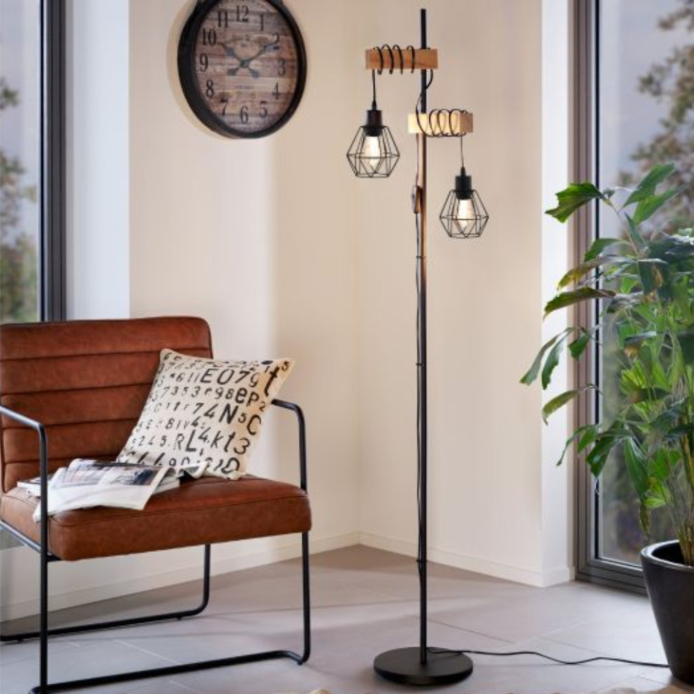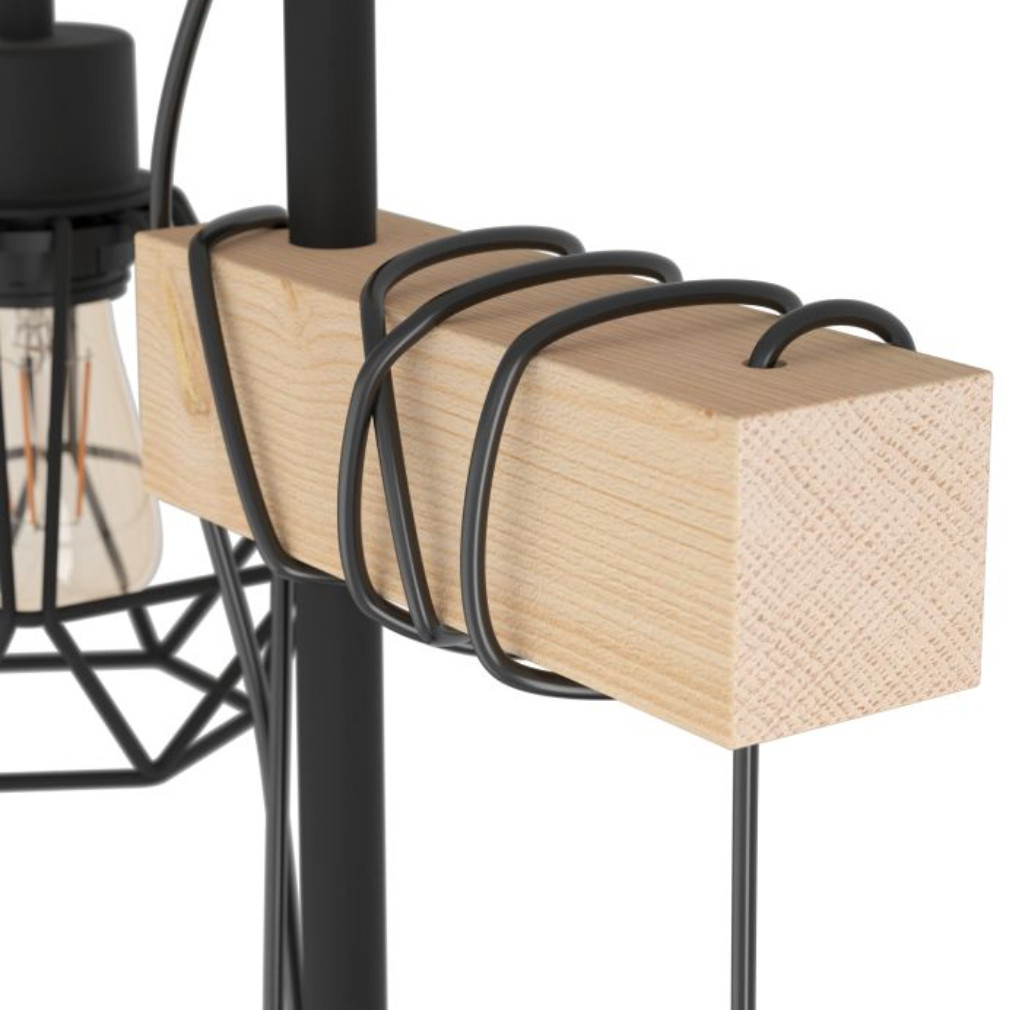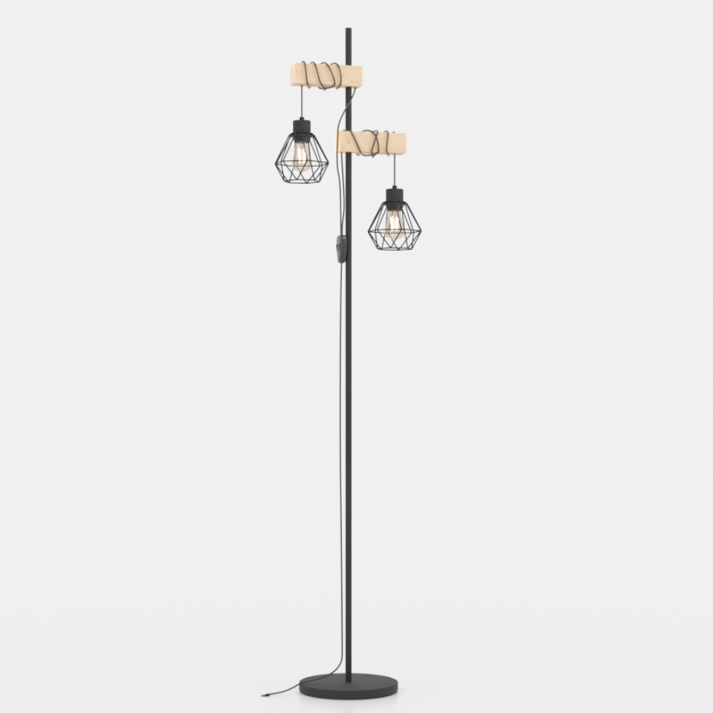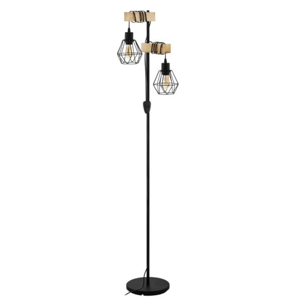 Állólámpa rácsos búrákkal, 167 cm, fekete-fa színű - Townshend Eglo 44081, zsinórkapcsoló, 2xE27 foglalattal