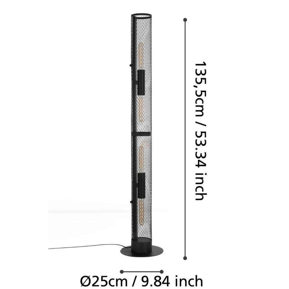 A Redcliffe Eglo 43537 állólámpa 136 cm magasságával és modern, fekete acél kialakításával illeszkedik a lakásvilágítási megoldások közé. A lámpatest négy darab E27 foglalattal rendelkezik, amelyekbe cserélhető fényforrások helyezhetők, így a fényáram, színhőmérséklet és teljesítmény a felhasználó igényeihez igazítható. A lámpa nem szabályozható, de talpkapcsolóval egyszerűen működtethető. Az IP20-as védettség beltéri használatra teszi alkalmassá, a 25 cm szélességű, 12 cm átmérőjű kialakítás stabil elhelyezést biztosít. A termék súlya 6,17 kg, csomagolási méretei 14x16x138 cm. A lámpa fényforrást nem tartalmaz, a gyártó az EGLO.