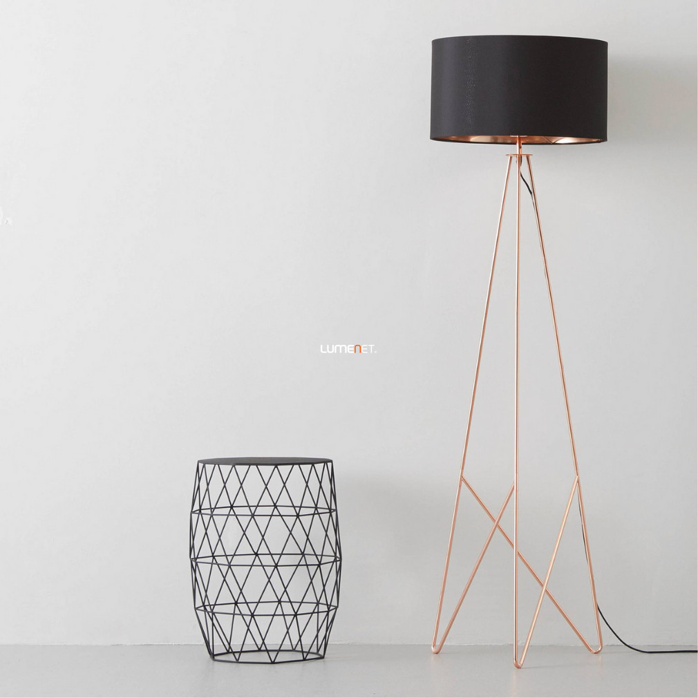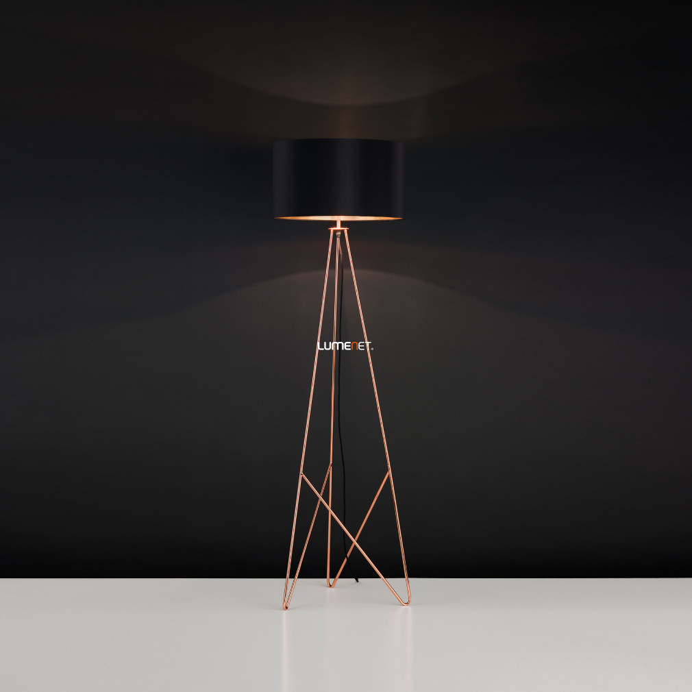 Állólámpa talpkapcsolóval, 154 cm, fekete-vörösréz - Camporale Eglo 39229, textil, 1xE27 foglalattal