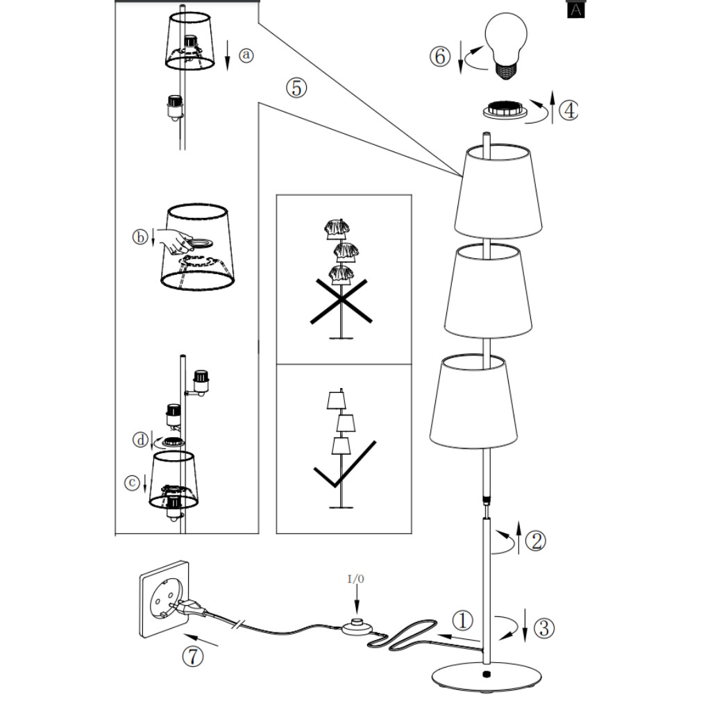 Az Almeida Eglo 99612 állólámpa 167 cm magasságával és sárgaréz-kávé színű felületével modern és elegáns megjelenést biztosít bármely lakótérben. A lámpatest acélból és textilből készült, három darab E27 foglalattal rendelkezik, amelyek cserélhető fényforrással szerelhetők fel. A lámpa nem tartalmaz fényforrást, így a kívánt fényáram, színhőmérséklet és teljesítmény szabadon választható. Talpkapcsolóval működtethető, a kábel hossza 2,3 méter, ami rugalmasságot biztosít az elhelyezés során. A lámpatest átmérője 32 cm, szélessége 30 cm, védettségi besorolása IP20, így beltéri használatra alkalmas. A termék tömege 3,96 kg, csomagolási méretei 21x27x91 cm. A gyártó az EGLO.