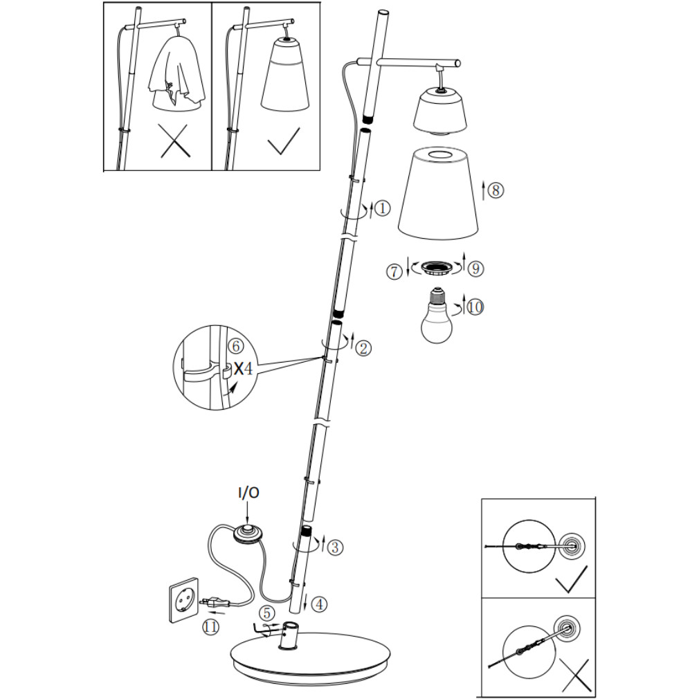 A Canterras Eglo 99547 állólámpa 179 cm magasságával és modern, fekete-szürke-fehér színkombinációjával elegánsan illeszkedik a lakótérbe. Az acél és kő felhasználásával készült lámpatest 1 db E27 foglalattal rendelkezik, melybe cserélhető fényforrás helyezhető. A lámpa nem tartalmaz fényforrást, így a kívánt teljesítményű és színhőmérsékletű izzó szabadon választható. A talpkapcsolóval egyszerűen vezérelhető, nem szabályozható kivitelű világítótest IP20 védettséggel rendelkezik. A lámpa hossza 430 mm, átmérője 300 mm, szélessége 150 mm, magassága 1785 mm, tömege 6,82 kg. A termék logisztikai kódja 99547, csomagolása 15x33x60 cm méretű.