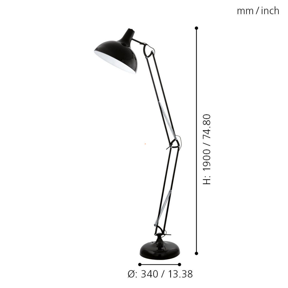A Borgillio Eglo 94698 állólámpa modern stílusban készült, fekete-fehér színkombinációban. A lámpatest 190 cm magasságú, acél anyagból készült, amely biztosítja a tartósságot és a stabilitást. Az E27 foglalat egy darab cserélhető fényforrást fogad, amely nem része a csomagnak, így a felhasználó szabadon választhatja meg a kívánt fényerőt és színhőmérsékletet. A lámpa IP20 védettségi besorolással rendelkezik, beltéri használatra alkalmas. A talpkapcsoló kényelmes vezérlést tesz lehetővé, a csomagolás méretei 39 cm hosszú, 23 cm széles és 93 cm magas. A termék tömege 14,54 kg, gyártója az EGLO.