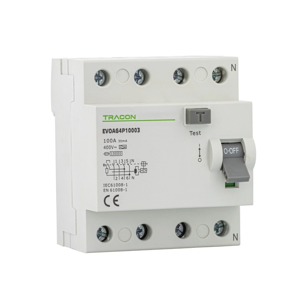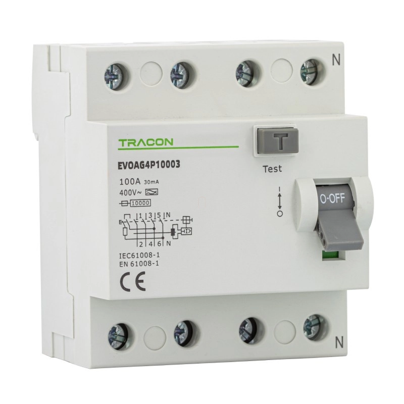 Áram-védőkapcsoló, 4 pólusú 40A, 30mA, 10kA EVOAG4P4003 Tracon