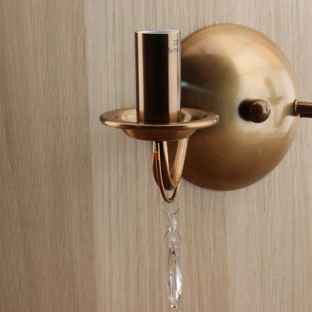 A Fabiola Smarter 02-710 arany színű falikar modern stílusban készült, két darab E14 foglalattal szerelt, cserélhető fényforrás használatára tervezett lakásvilágítási eszköz. A lámpatest sárgaréz színű fémből és áttetsző üvegből készült, kristály díszítéssel ellátva. A termék védettségi szintje IP20, így beltéri használatra alkalmas. A falikar méretei: 275 mm hosszúság, 155 mm szélesség és 180 mm magasság. A csomagolás mérete 28 cm hosszú, 13 cm széles és 16 cm magas, a termék tömege 0,67 kg. A lámpatest fényforrást nem tartalmaz, a fényáram, fényszín, teljesítmény és színhőmérséklet a választott fényforrástól függ. A gyártó a Redo.