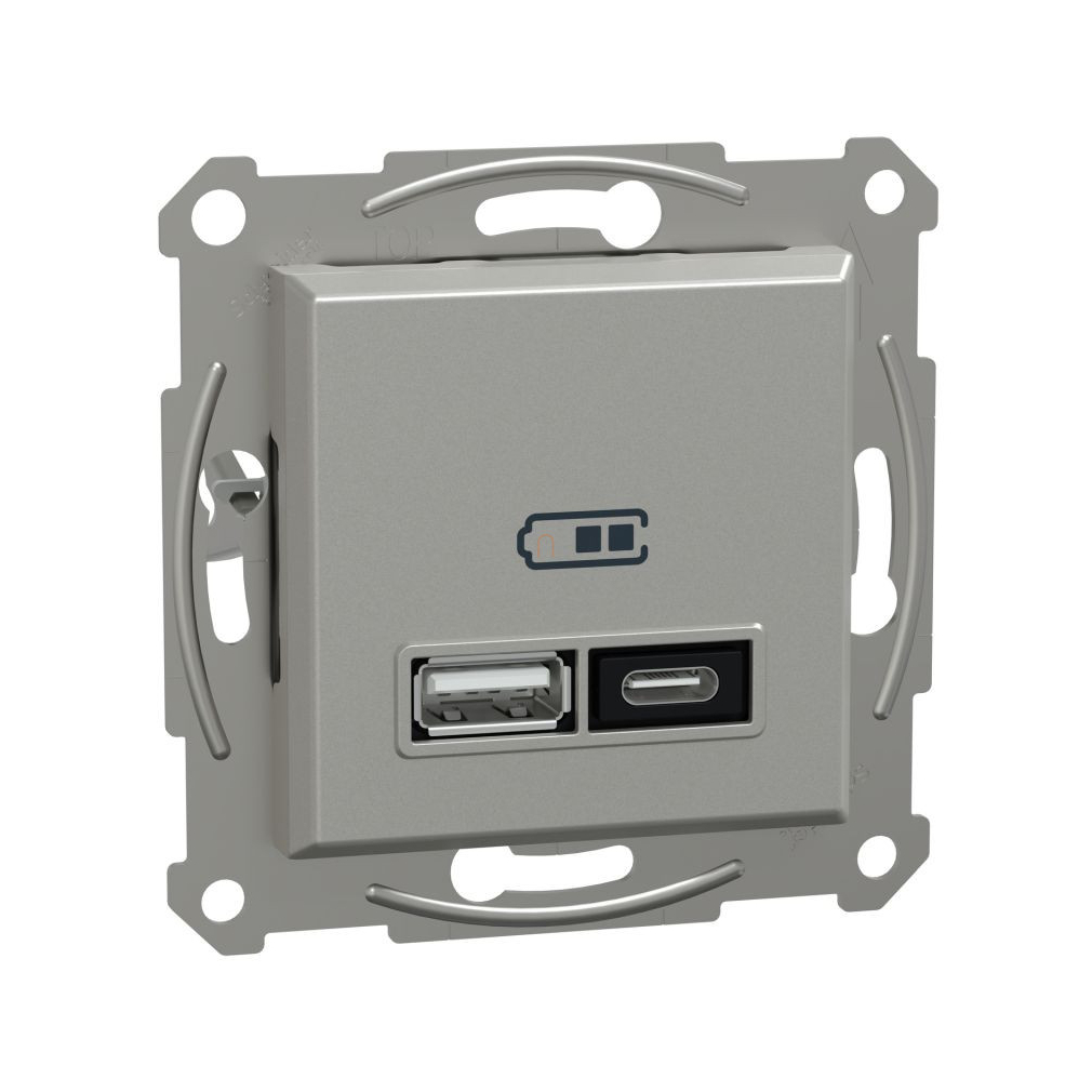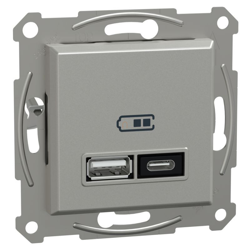 Schneider Electric Asfora - EPH2700561 - dupla USB töltő, A+C, 21W, alumínium