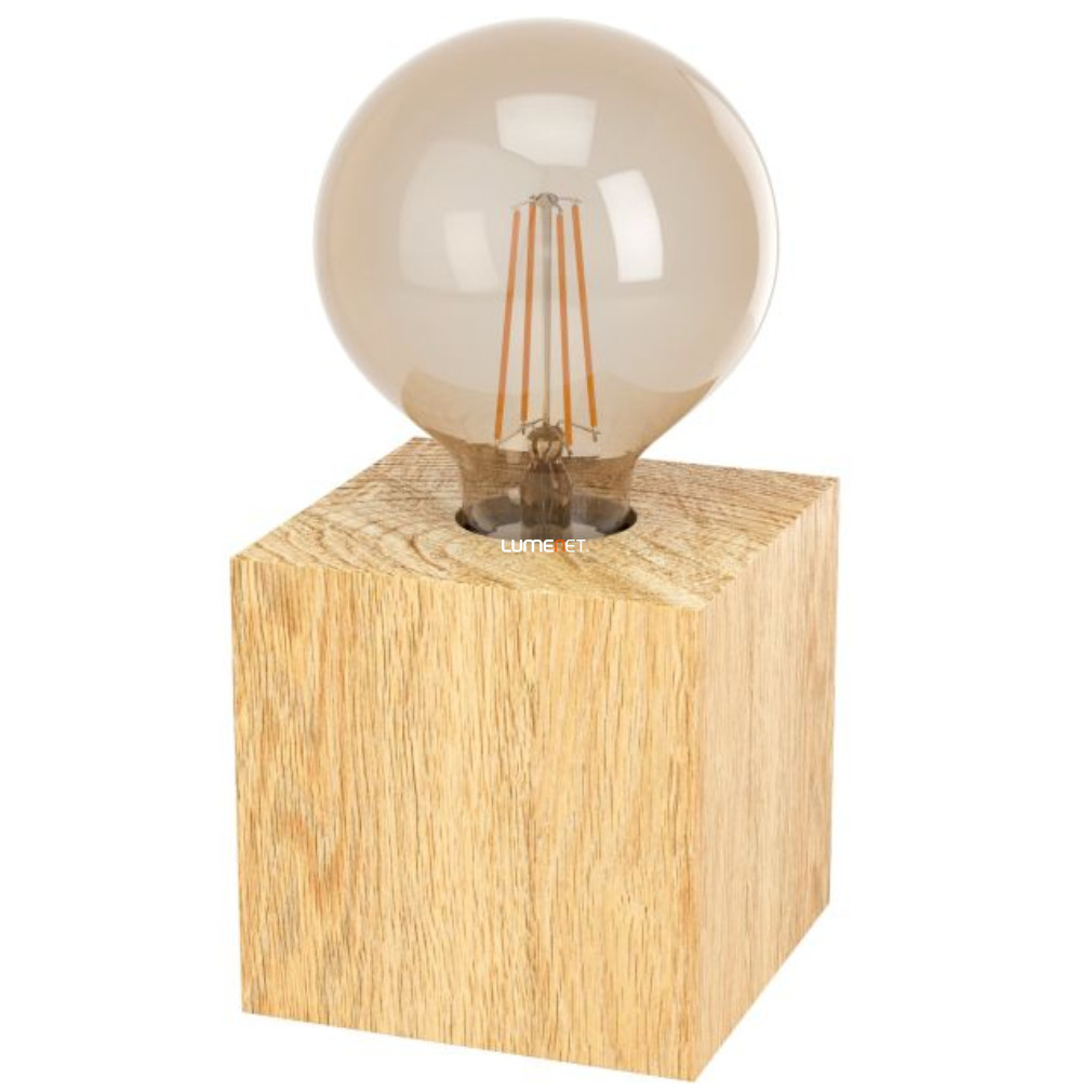 Asztali fa kocka lámpa, 9 cm - Prestwick 2 Eglo 43733, 1xE27 foglalattal