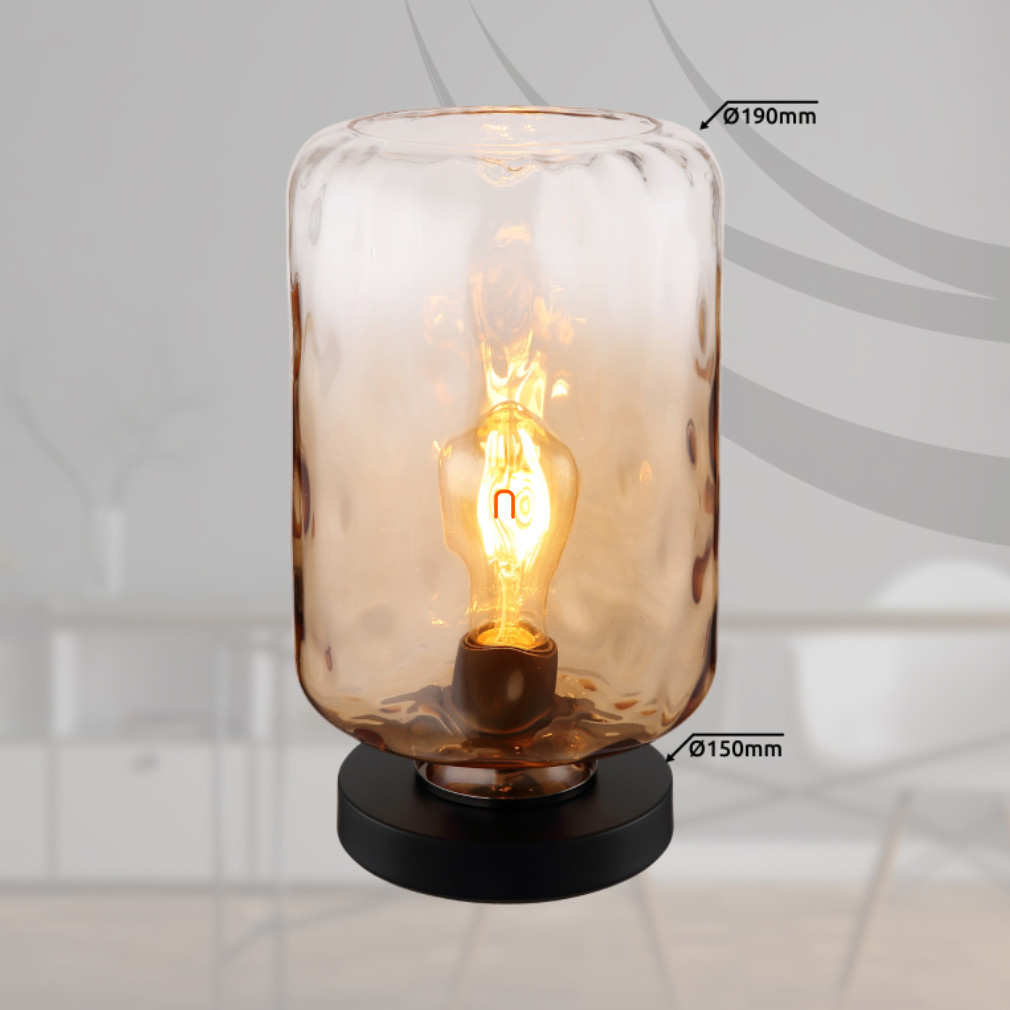Asztali hangulatlámpa borostyán színben, üveg, 32 cm - Darina Globo 16046TA - színátmenetes, billenőkapcsolós, 1xE27 foglalattal, 230 V