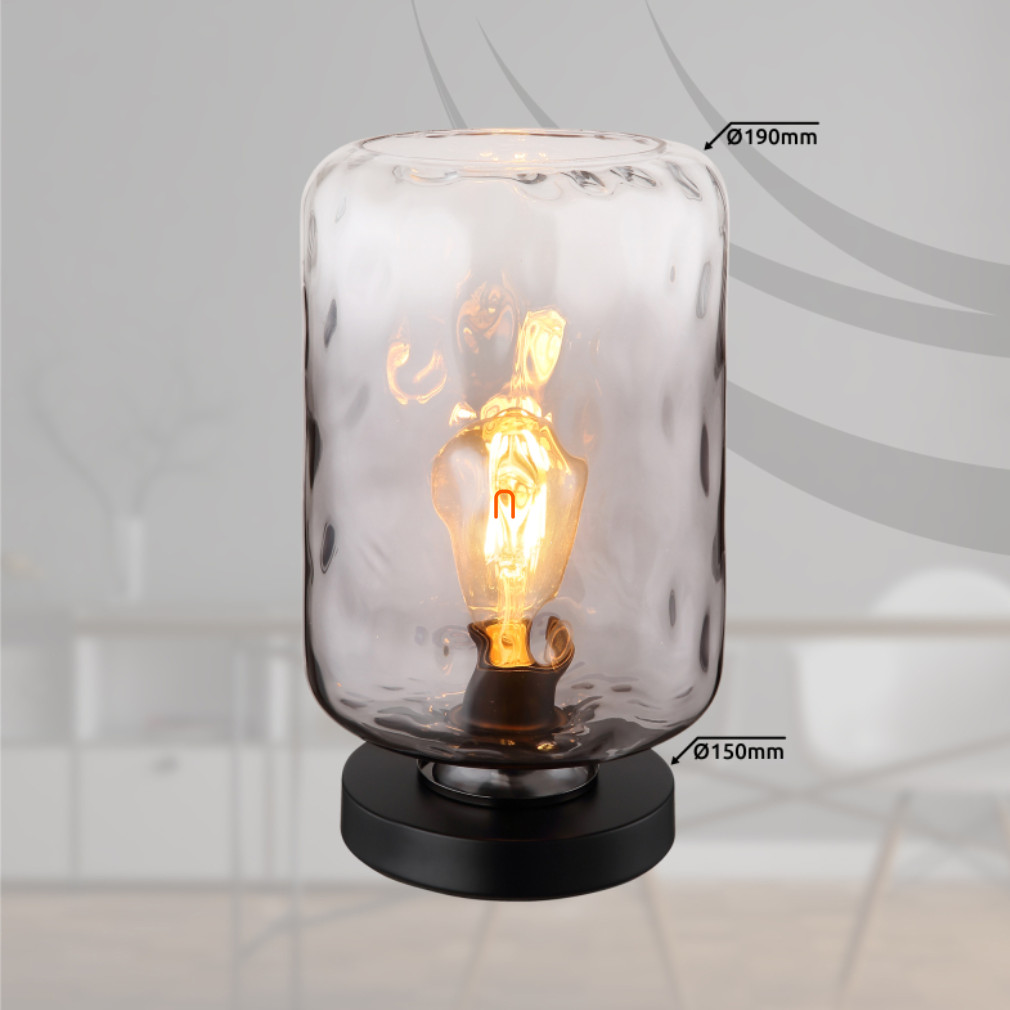 Asztali hangulatlámpa füstös árnyalatban, üveg, 32 cm - Darina Globo 16046TS - színátmenetes, billenőkapcsolós, 1xE27 foglalattal, 230 V