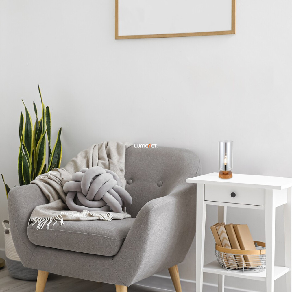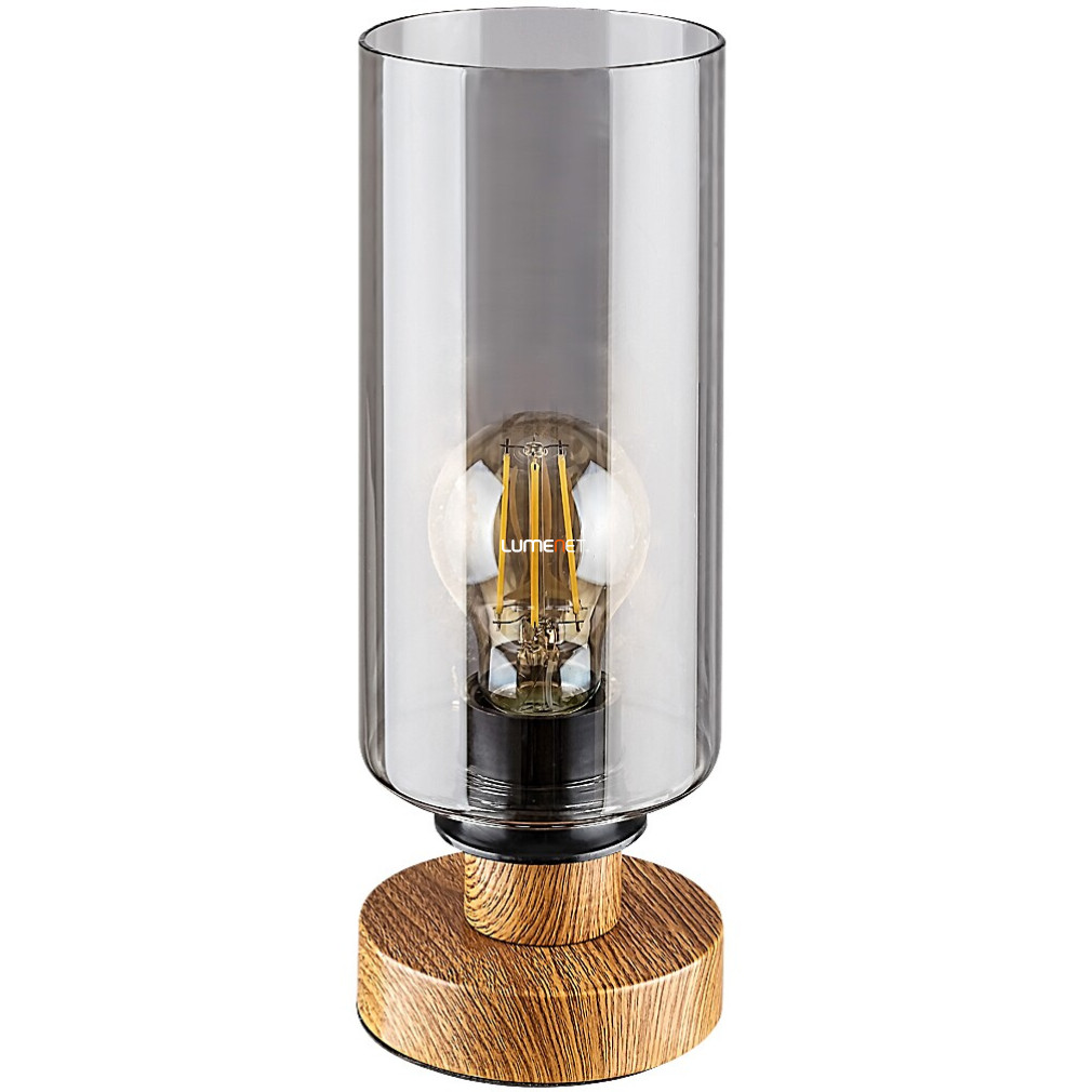 A Tanno Rábalux 74120 asztali lámpa 26 cm magasságával és 10 cm átmérőjével modern megjelenést biztosít otthoni vagy irodai környezetben. A lámpatest egy darab E27 foglalattal rendelkezik, így a fényforrás szabadon cserélhető, lehetővé téve a fényáram, fényszín, teljesítmény és színhőmérséklet egyéni beállítását. A termék fém és üveg anyaghasználata, valamint fa és füstszínű kivitele esztétikus megjelenést eredményez. A lámpa IP20 védettségi besorolással rendelkezik, így beltéri használatra alkalmas. A csomag nem tartalmaz fényforrást, a maximális kábelhossz 1,5 méter. A lámpa tömege 0,76 kg, csomagolási méretei 15x15x28 cm. A terméket a Rábalux gyártja, logisztikai kódja 74120.