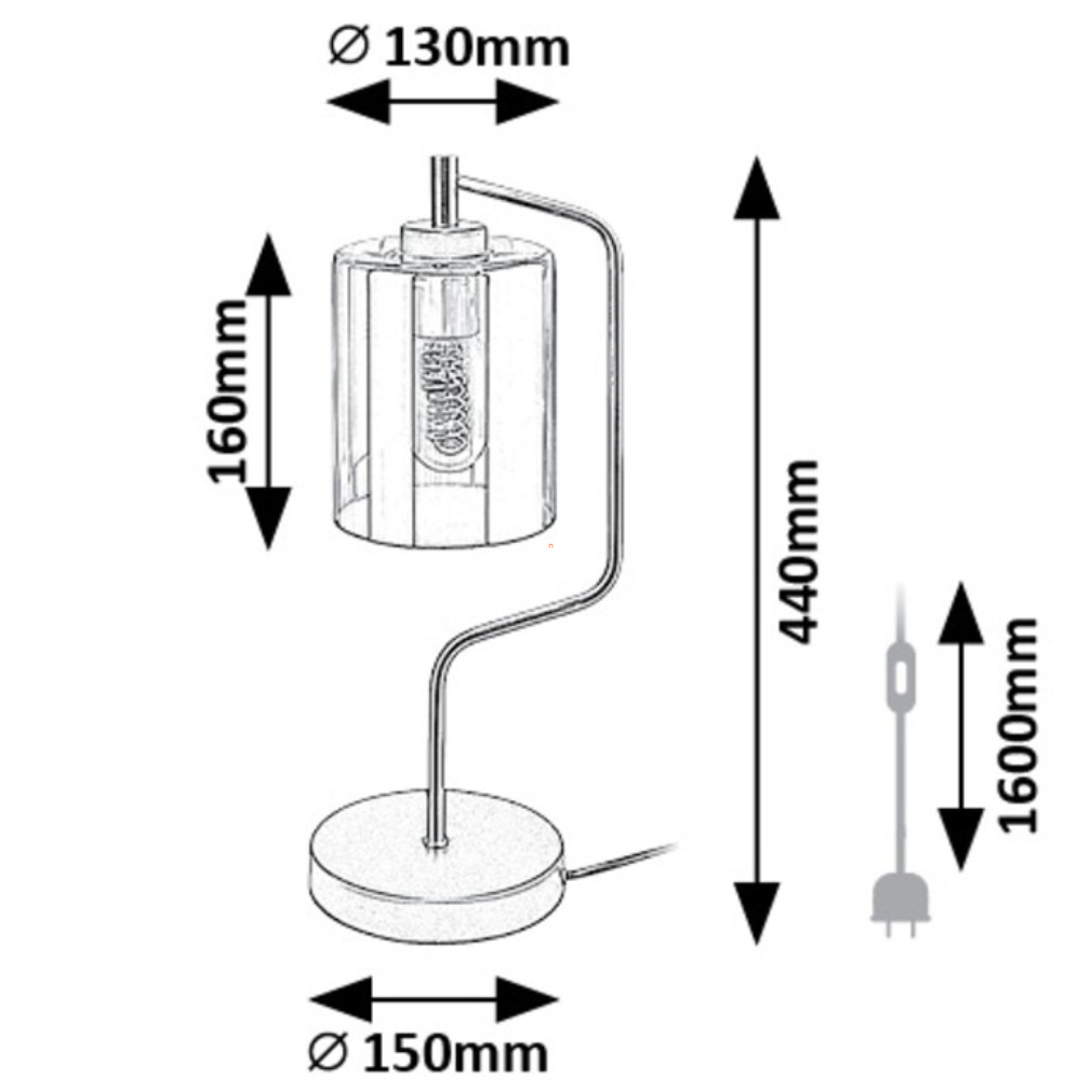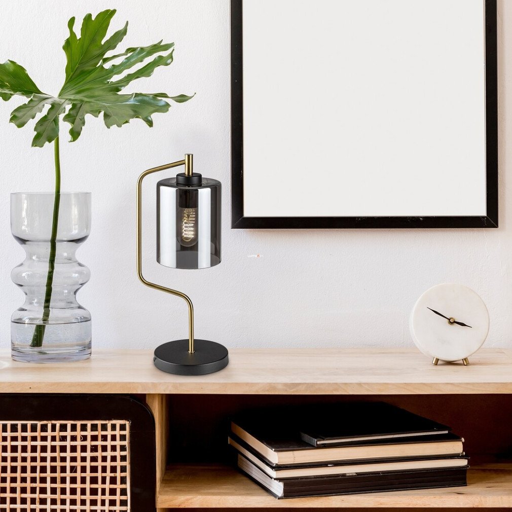 A Perez Rábalux 74202 asztali lámpa egy modern, 44 cm magas világítási megoldás, amelyet E27-es foglalattal szereltek fel, és 230 V névleges feszültségen működtethető. A lámpatest matt fekete fém és füstszínű üveg anyagok kombinációjából készült, ami elegáns megjelenést biztosít. Az 1xE27 foglalat lehetővé teszi a fényforrás cseréjét, így a fényáram, fényszín, teljesítmény és színhőmérséklet igény szerint variálható. A termék nem tartalmaz fényforrást, IP20 védettségi besorolással rendelkezik, így beltéri használatra alkalmas. Az asztali lámpa átmérője 130 mm, tömege 1,273 kg, kábelhossza 1,6 méter. A csomagolás méretei: 19 cm széles, 43 cm hosszú és 19 cm magas. A gyártó a Rábalux.