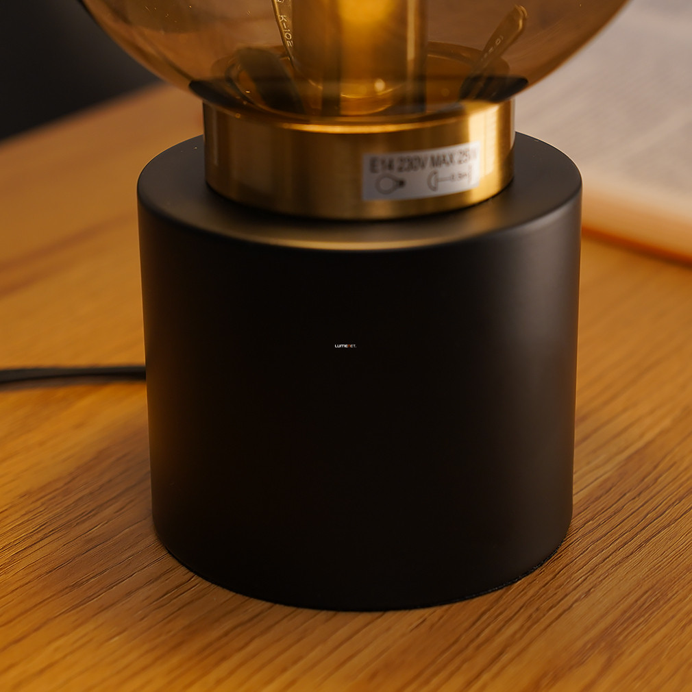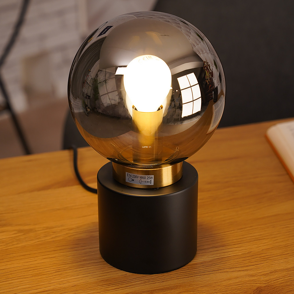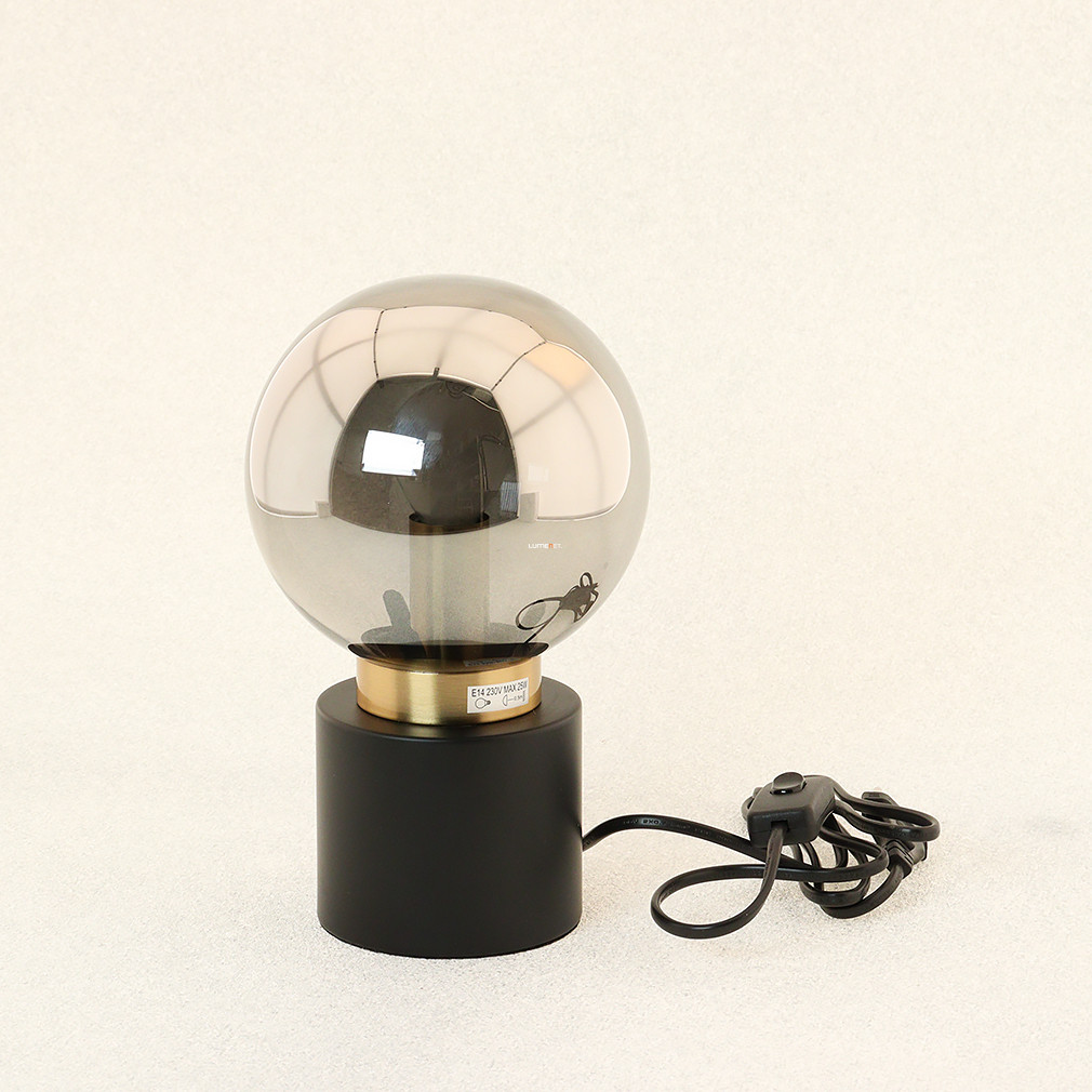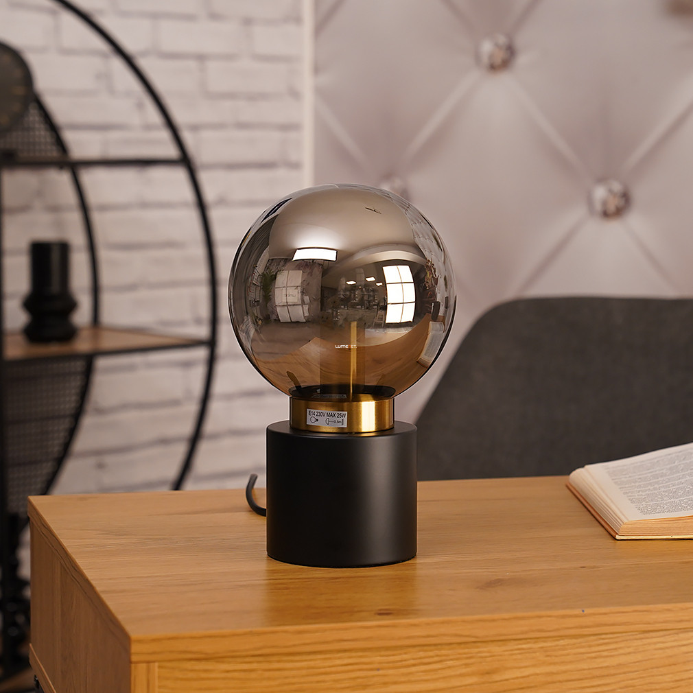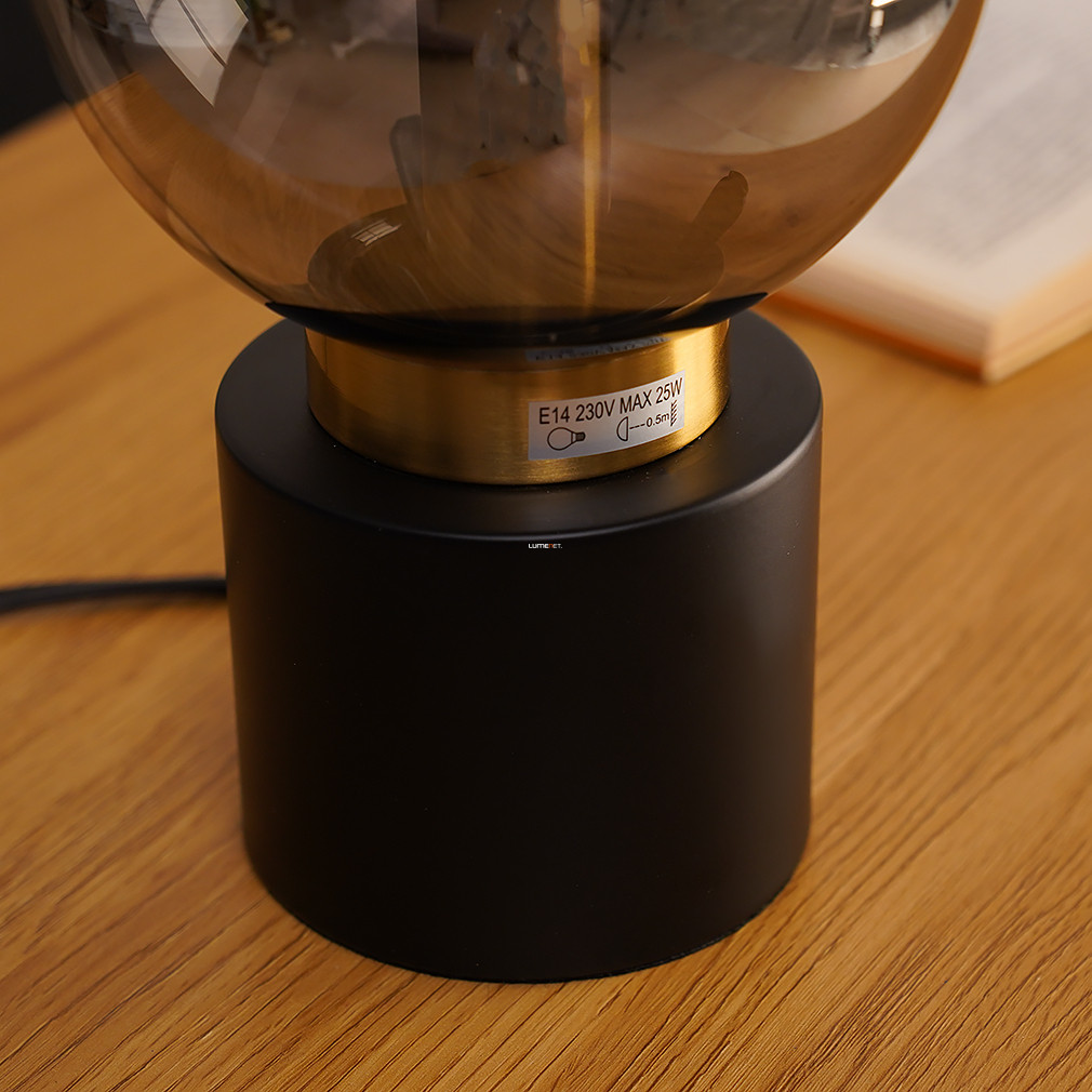 Asztali lámpa fekete-arany színben, 24 cm, füstszínű üveg - Marka Globo 21003BB, 1xE14 foglalattal