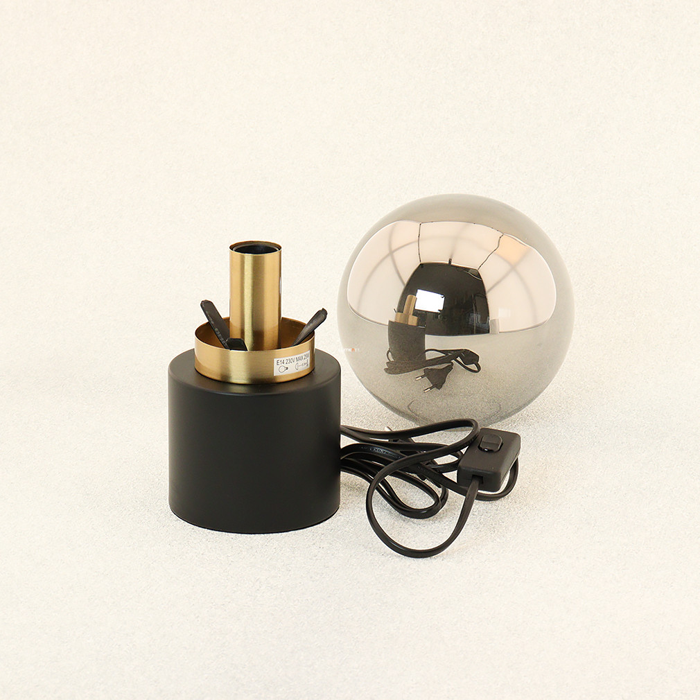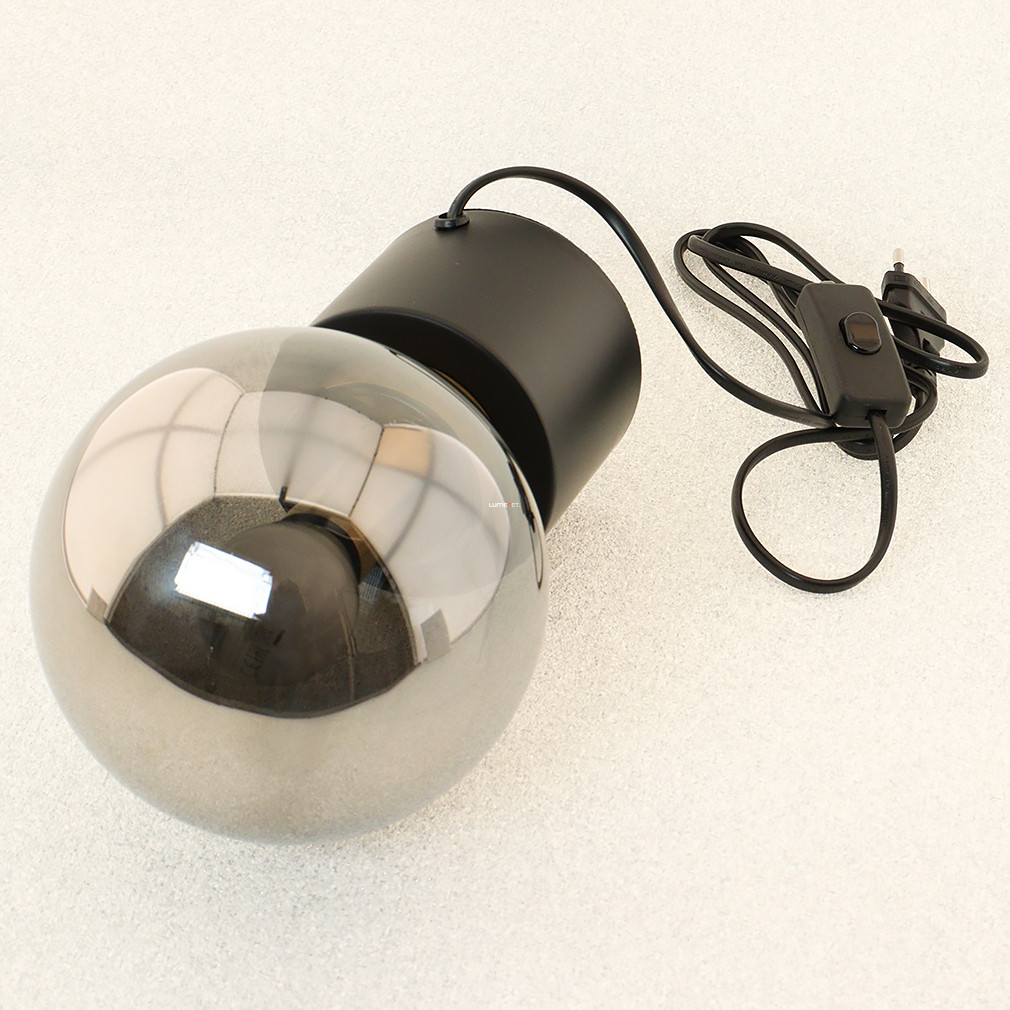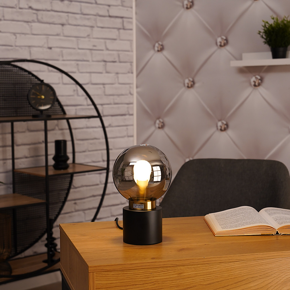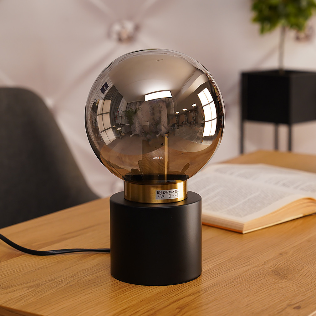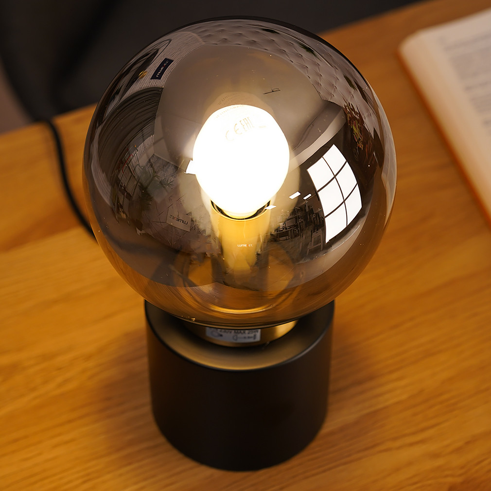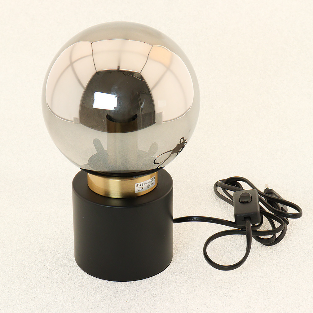 Asztali lámpa fekete-arany színben, 24 cm, füstszínű üveg - Marka Globo 21003BB, 1xE14 foglalattal