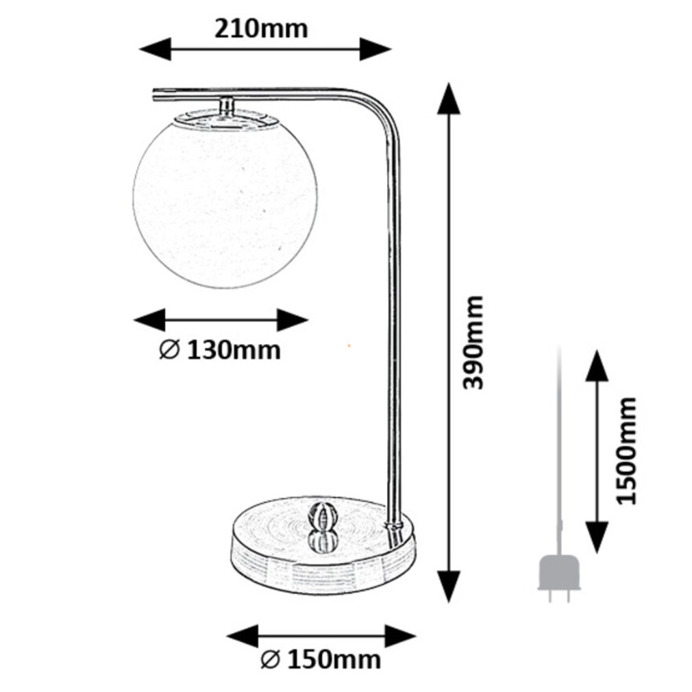 Asztali lámpa gömb üvegbúrával, 39 cm - Kiara Rábalux 74203 - textil kábeles, 1xE27 foglalattal, 230 V
