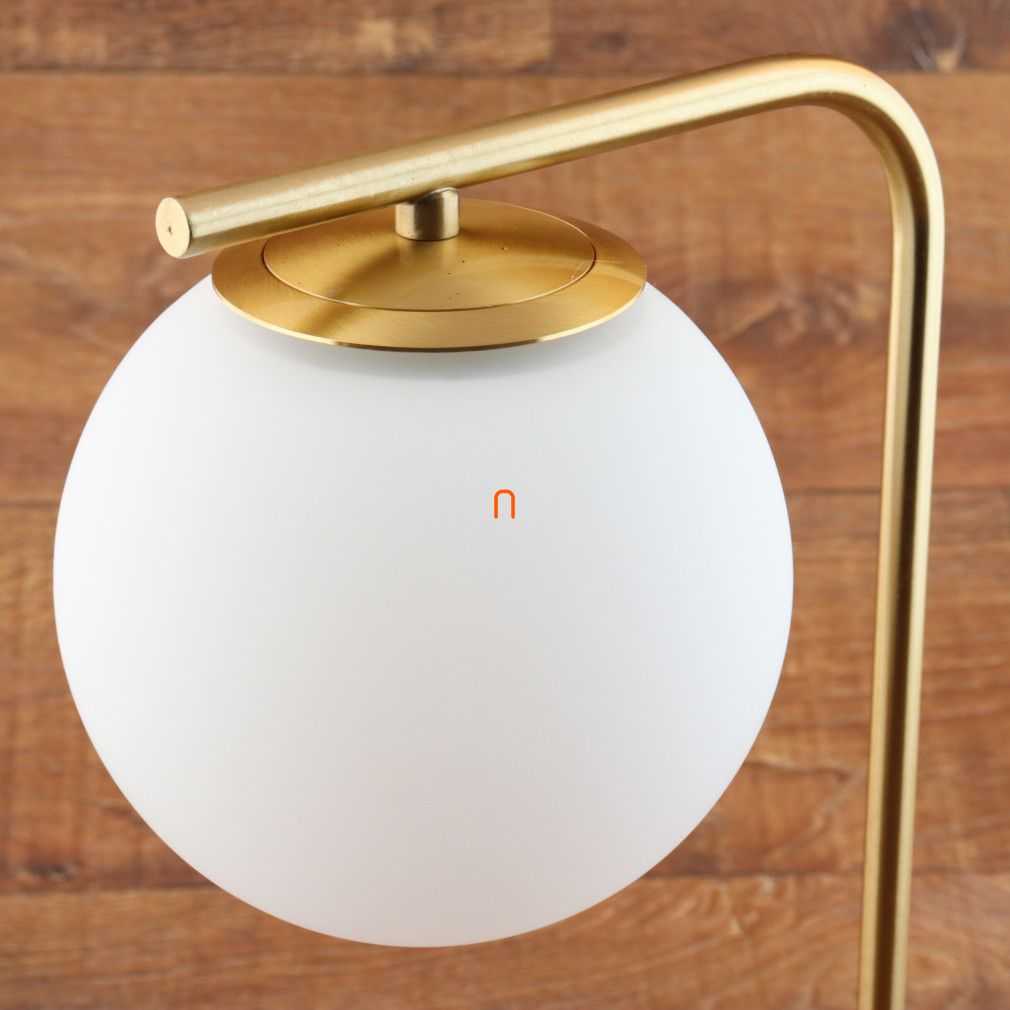 A Kiara Rábalux 74203 asztali lámpa modern megjelenését a gömb formájú fehér üvegbúra és az arany színű fém test elegáns kombinációja adja. A lámpa 39 cm magas, átmérője 13 cm, hosszúsága 21 cm, tömege 1,85 kg. Egy darab E27 foglalattal rendelkezik, amely cserélhető fényforrás használatát teszi lehetővé, maximális kompatibilitást biztosítva különböző teljesítményű és színhőmérsékletű izzókkal. A termék textil kábellel szerelt, névleges feszültsége 230 V. A lámpa anyaga fém és üveg, védettségi besorolása IP20, így beltéri használatra alkalmas. A csomagolás méretei: 42 cm széles, 17 cm hosszú és 24 cm magas. A fényforrás nem tartozék.