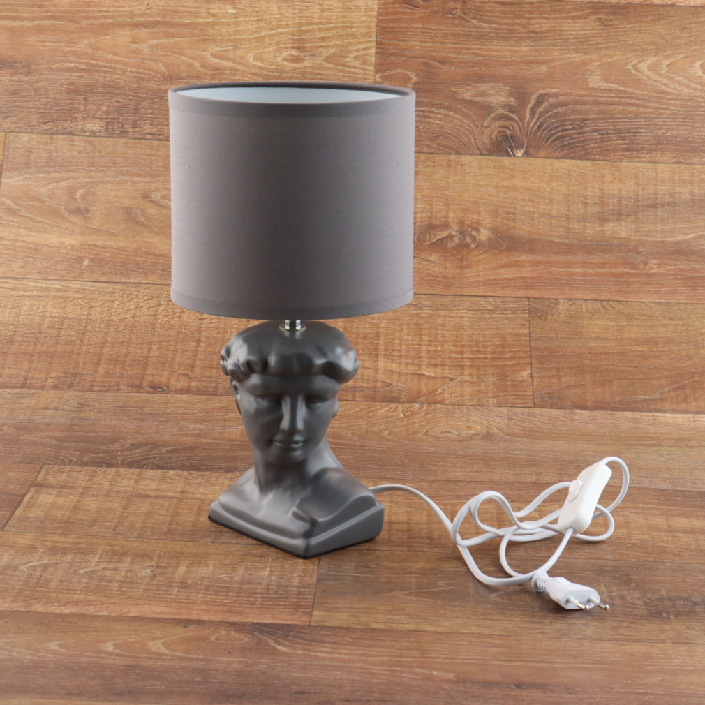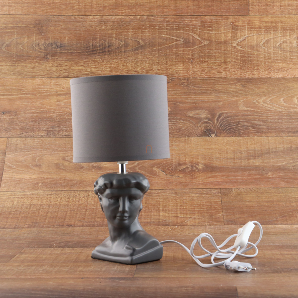 Asztali lámpa római fejszobor talapzattal, szürke színben - Hermes Globo 21732G - 1xE14, 230 V, IP20, 1.3 méteres kábel