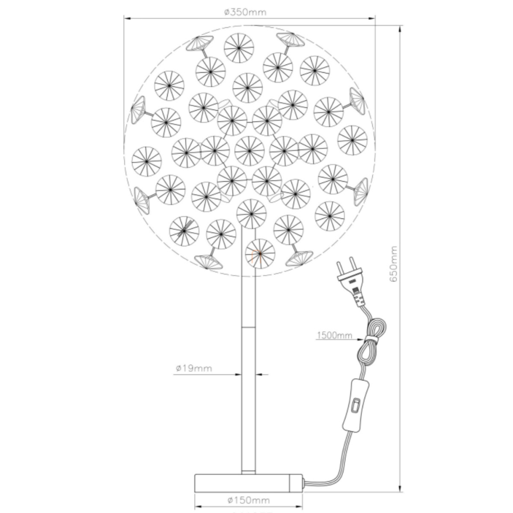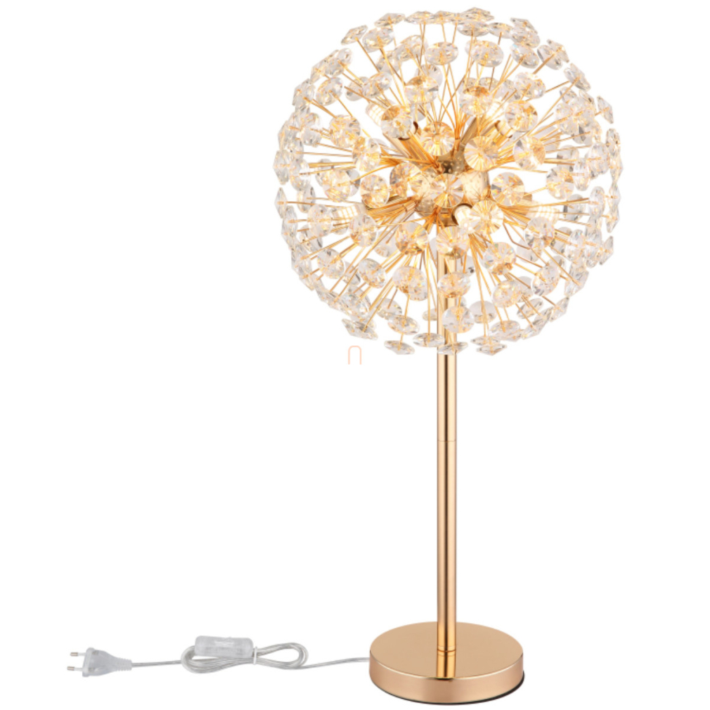 Design asztali lámpa, 65 cm, kristály pitypang arany színben - Katrina Globo 64135T - 350 lm, 3.5, 1.5 méteres kábel