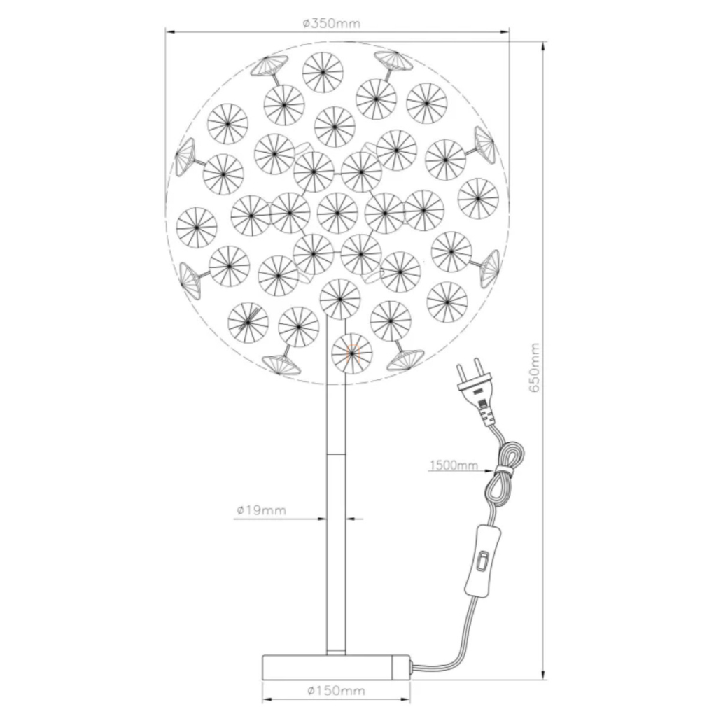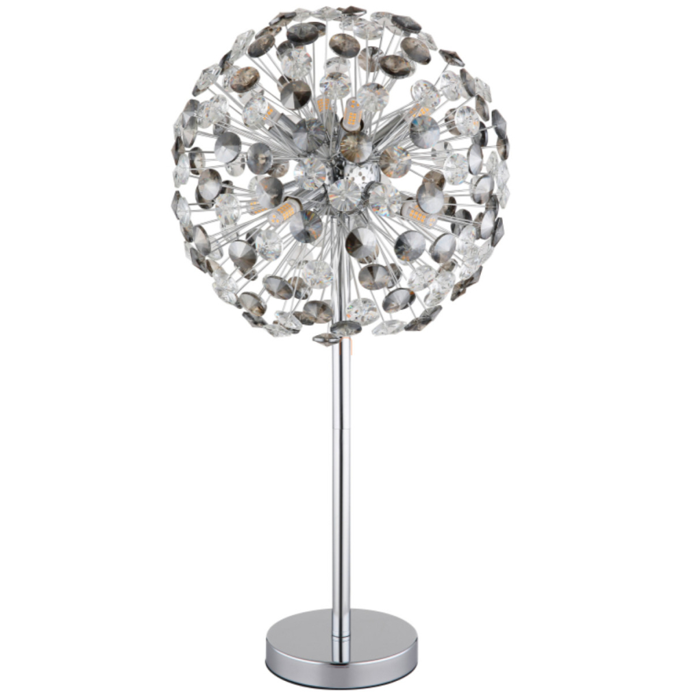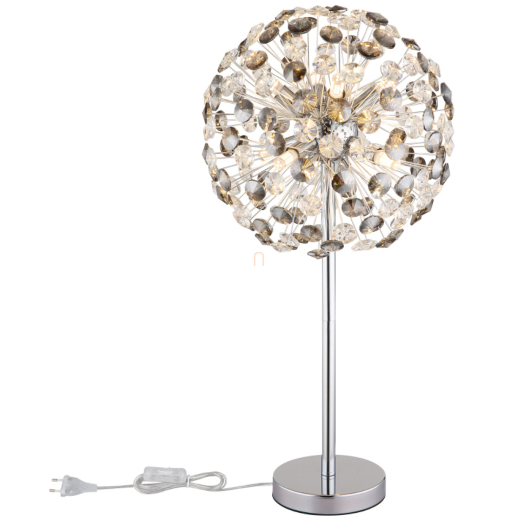 Design asztali lámpa, 65 cm, kristály pitypang, króm, füstszínű - Katrina Globo 64135TC - 350 lm, 3.5, 1.5 méteres kábel