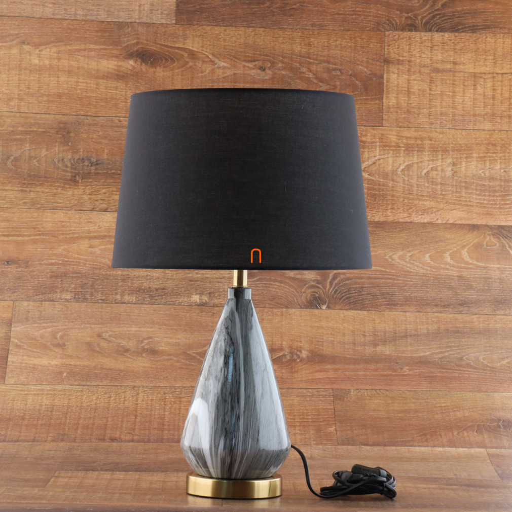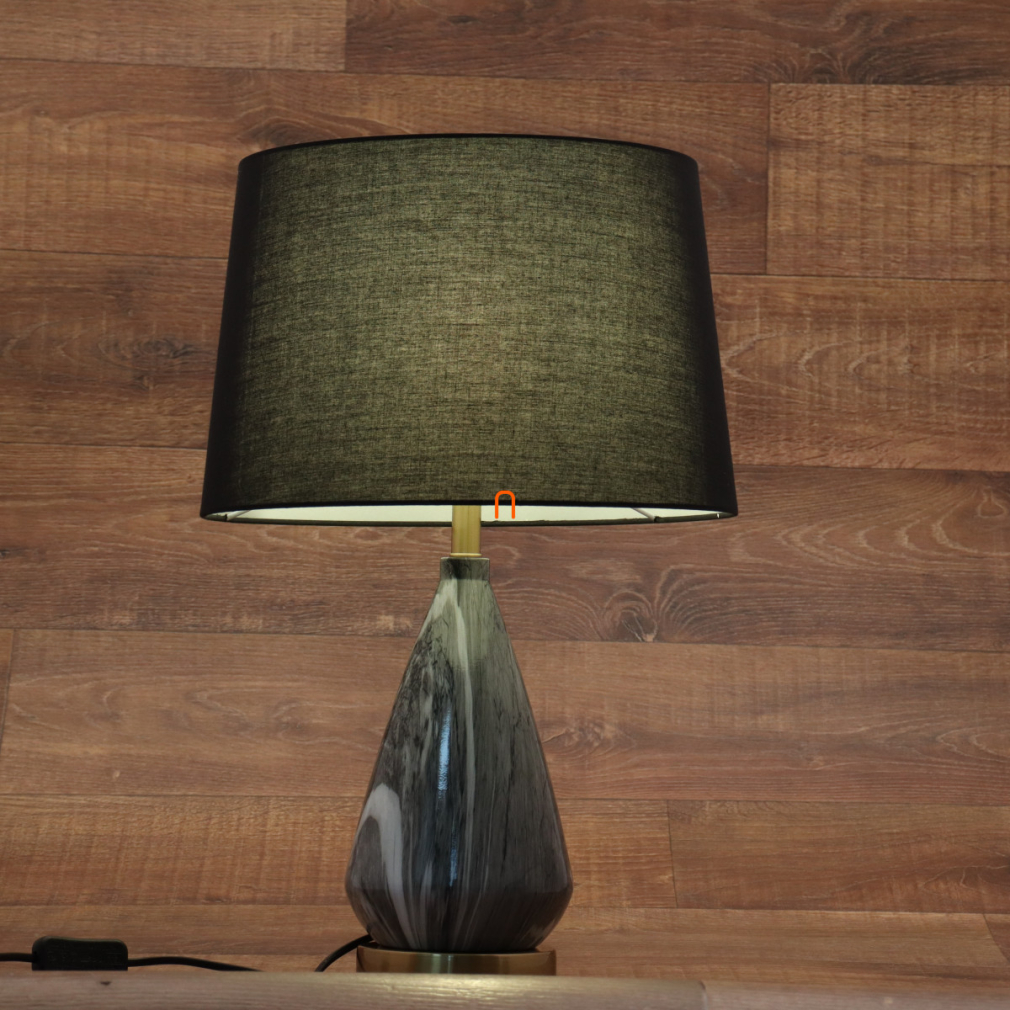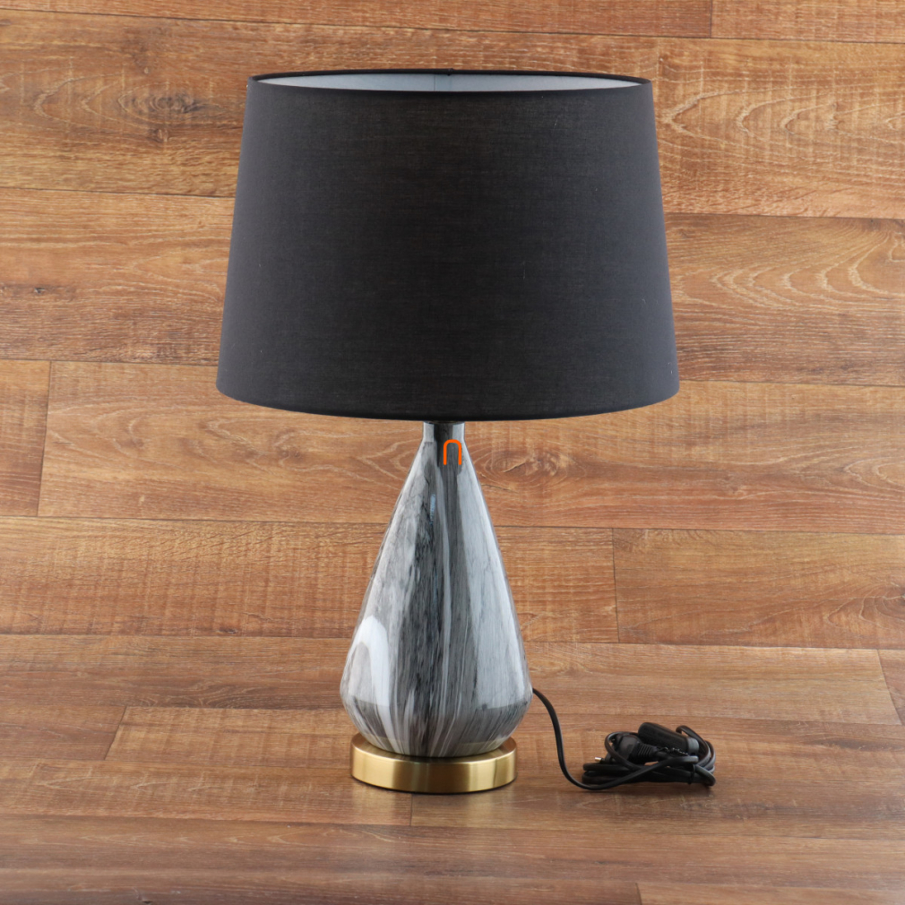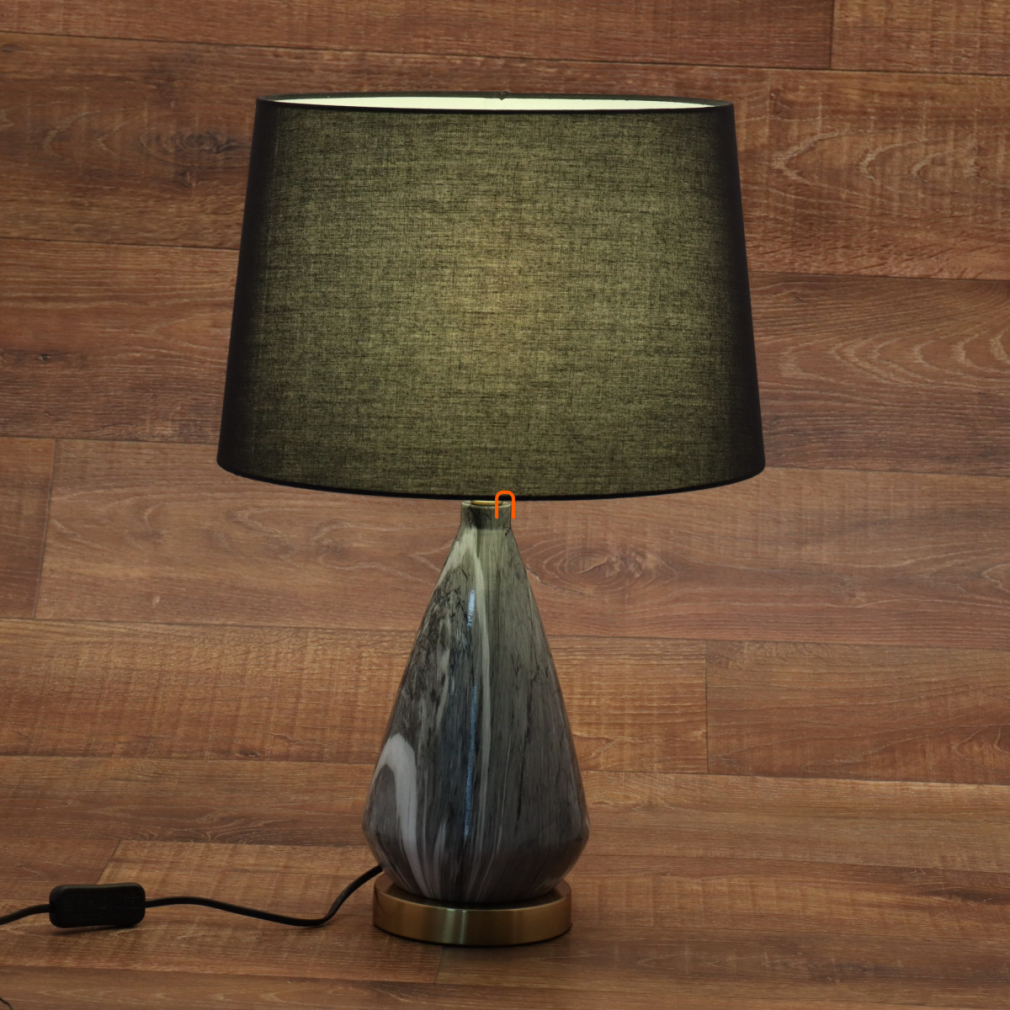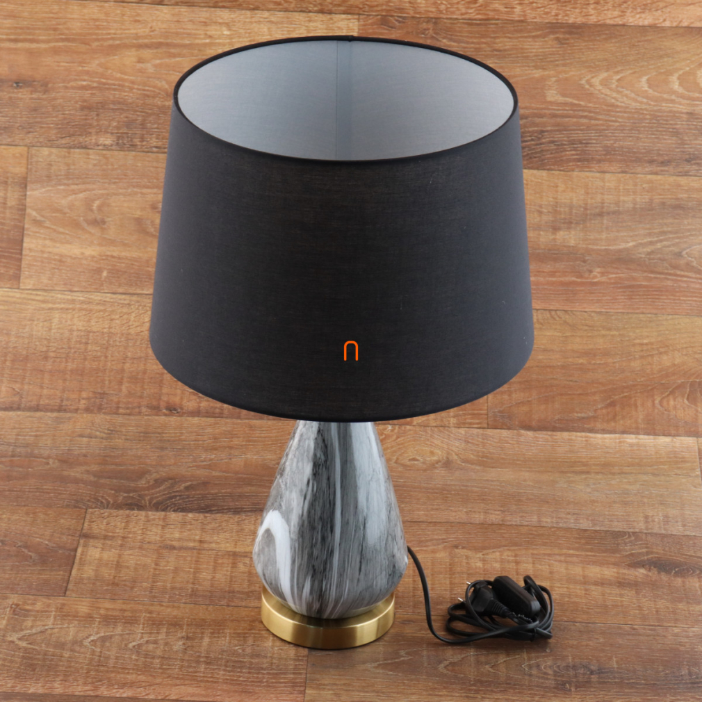 Asztali lámpa márvány hatású talapzattal, fekete, 54 cm - Kisa Globo 24147B - billenőkapcsolós, 1xE27 foglalattal, 230 V