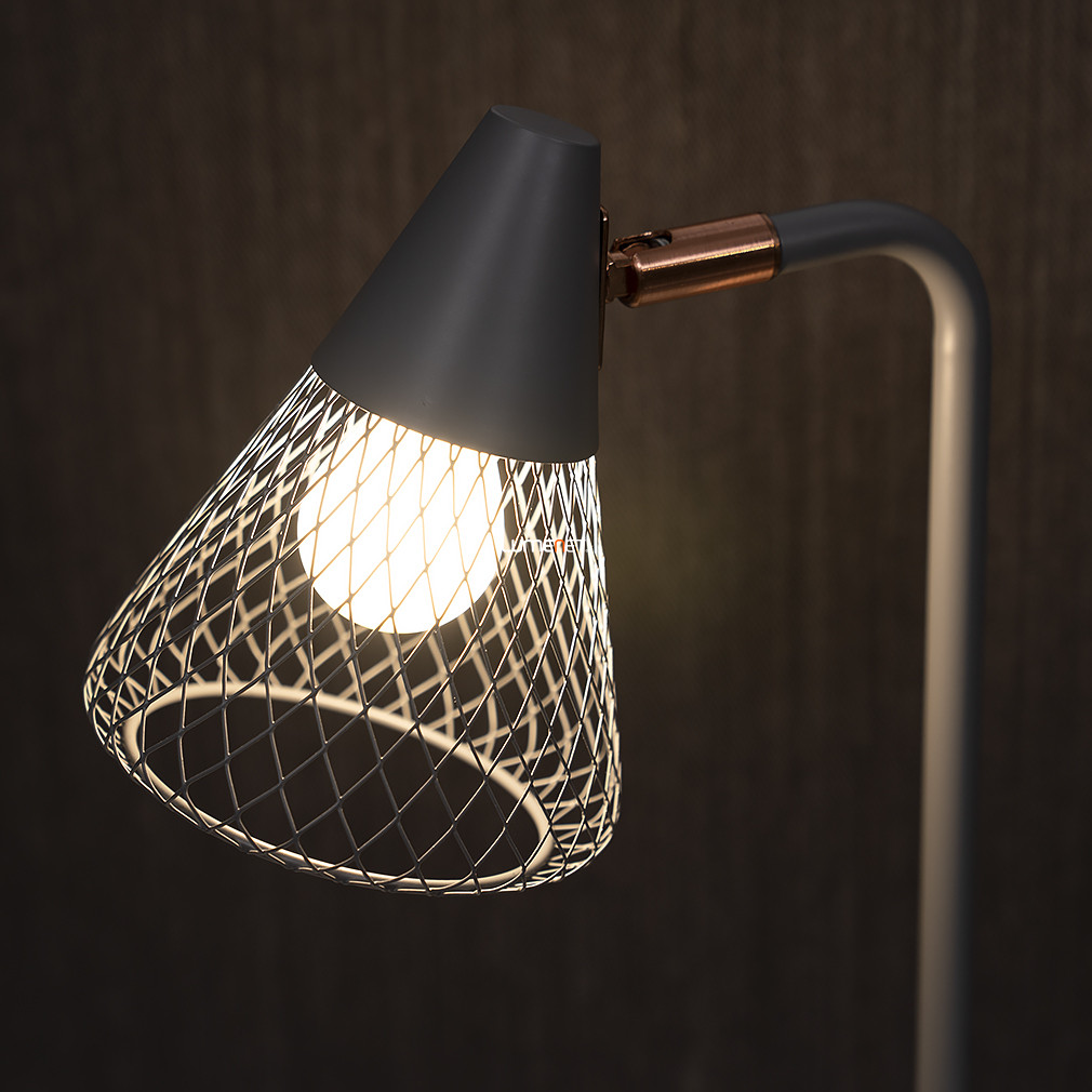 A Fanny Rábalux 3182 asztali lámpa szürke és rosegold színkombinációban, vintage stílusban készült, 46 cm magasságú és 15 cm átmérőjű fém lámpatesttel rendelkezik. A termék egy darab E14 foglalattal szerelt, cserélhető fényforrás használatára alkalmas, a fényforrást nem tartalmazza. A lámpa működtetése zsinórkapcsolóval történik, teljesítménye és fényárama a kiválasztott fényforrástól függ. IP20 védettségi besorolással rendelkezik, beltéri használatra alkalmas. A lámpa tömege 0,94 kg, a csomagolás méretei 47x17x17 cm, a kábel hossza 1,6 méter. A gyártó a Rábalux.