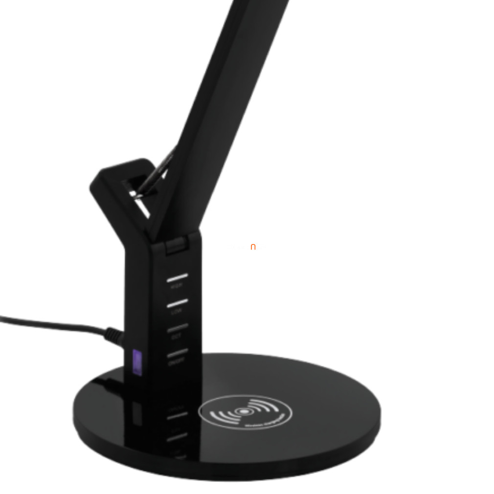 Az Asztali LED lámpa, 40 cm - Banderalo Eglo 99832 egy modern, fekete színű, 4,8 W teljesítményű LED modullal szerelt világítótest, amely 700 lumen fényáramot biztosít. A lámpa színhőmérséklete 3000 és 6500 Kelvin között szabályozható, így meleg és hideg fehér fény között választható a kívánt hangulatnak megfelelően. A termék beépített Qi-töltő funkcióval rendelkezik, amely lehetővé teszi a kompatibilis eszközök vezeték nélküli töltését. A lámpatest műanyagból készült, IP20 védettséggel rendelkezik, amely beltéri használatra teszi alkalmassá. A kapcsolóval ellátott asztali lámpa méretei 305 mm hosszúság, 170 mm szélesség és 405 mm magasság, tömege 1,1 kg. A világítótest fényereje és színhőmérséklete szabályozható, így optimális fényviszonyokat biztosít munkához vagy olvasáshoz. A LED fényforrás a lámpába integrált, így külön izzó beszerzése nem szükséges. A terméket az EGLO gyártja, logisztikai kódja 99832.