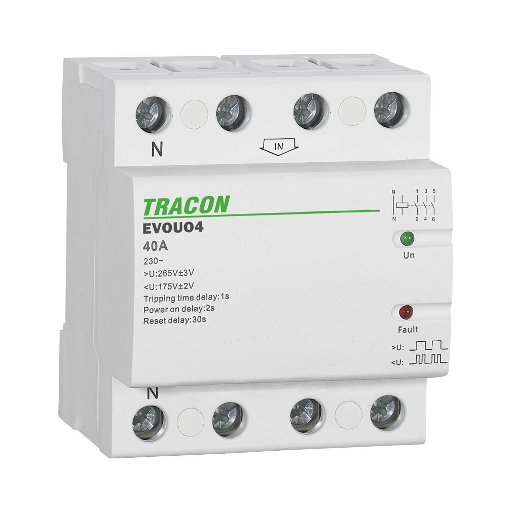 Automatikusan visszakapcsoló feszültség növekedési/csökkenési relé 4P.40A EVOUO4 Tracon