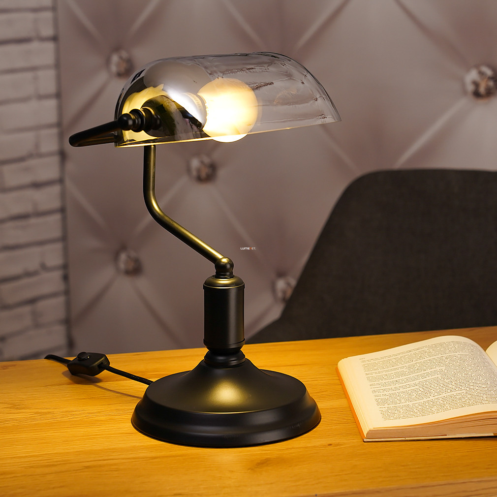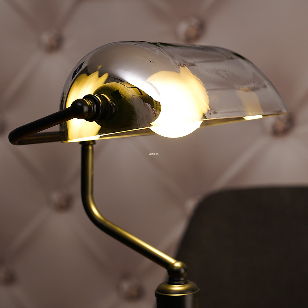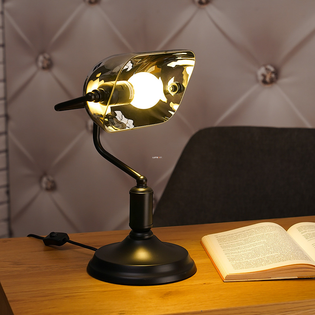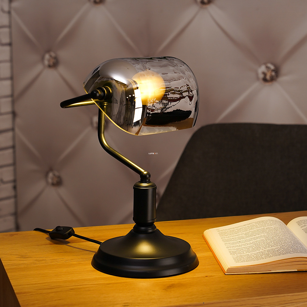 Banklámpa füstszínű üveg búrával, 32 cm - Antique Globo 2491B, 1xE27 foglalattal