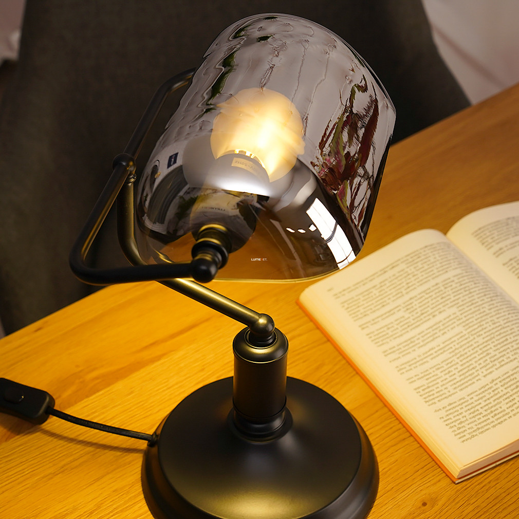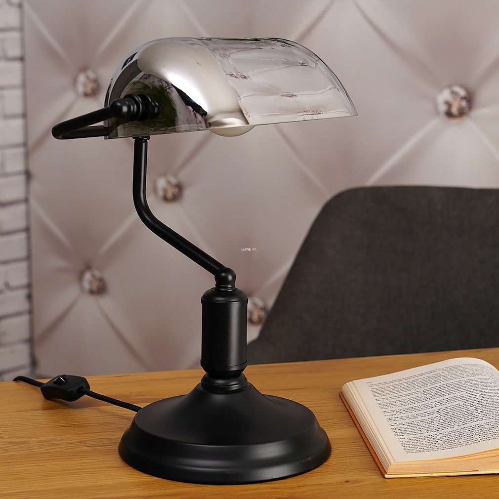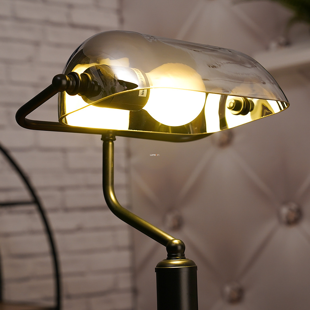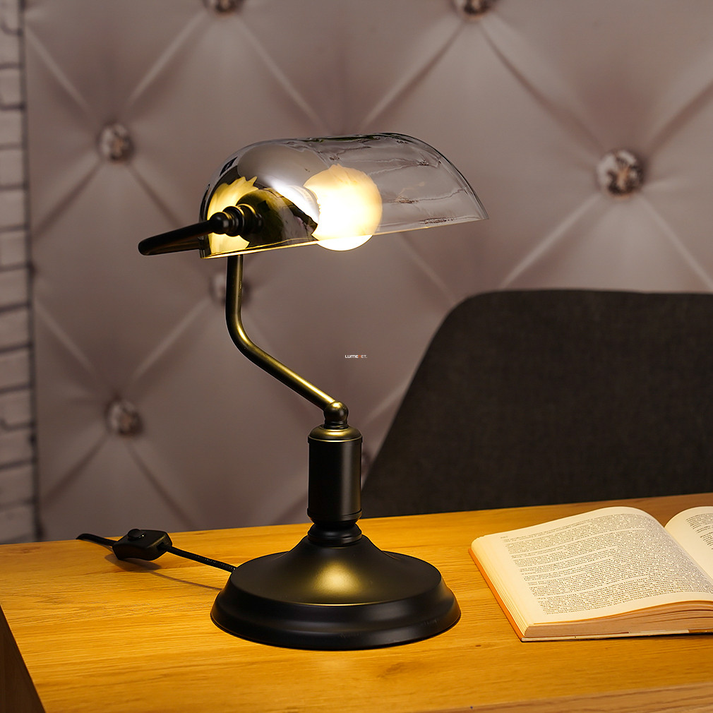 Banklámpa füstszínű üveg búrával, 32 cm - Antique Globo 2491B, 1xE27 foglalattal
