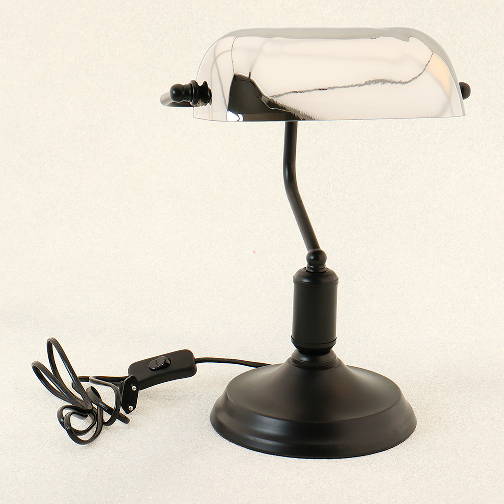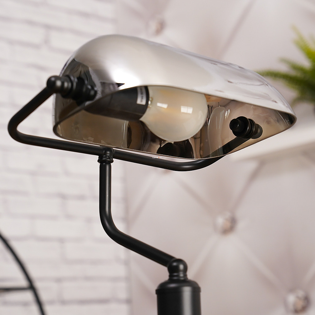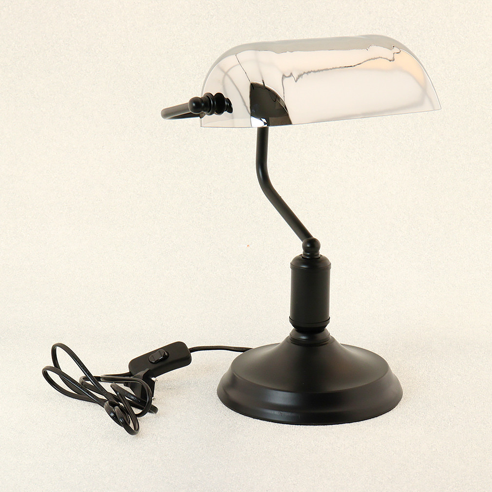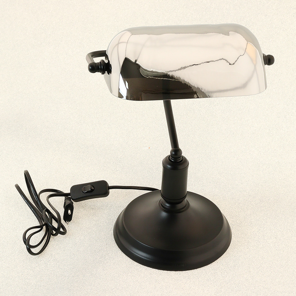 Banklámpa füstszínű üveg búrával, 32 cm - Antique Globo 2491B, 1xE27 foglalattal