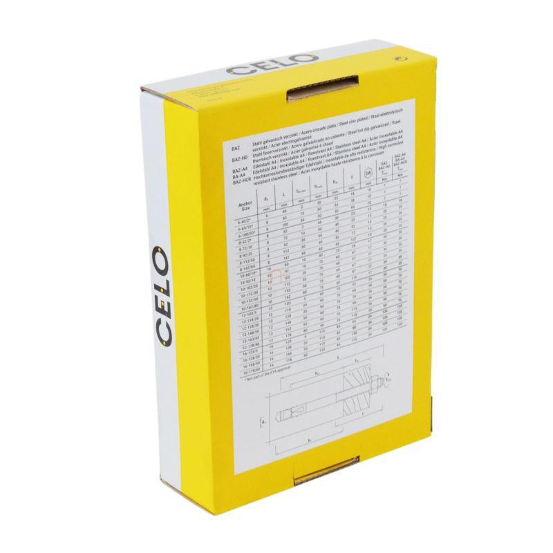A CELO BAZ Opcio 1-es önfeszítő alapcsavar széles körben felhasználható repedt és nem repedt betonban egyaránt. Repedés esetén után terpesztő hatás. Az R120 tűzállósági osztály nagyobb biztonságot nyújt tűz esetén. A hosszú menetkialakítás nagy felhasználási rugalmasságot biztosít. Nagy terhelehetőség, biztos tartás kis rögzítési- és peremtávolságok esetén is. Széles anyag és méret választékának köszönhetően a BAZ alapcsavar minden igényt kielégít.