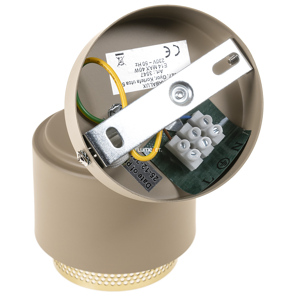 A Fedora Rábalux 3547 bézs spot lámpa arany színű belső búrával elegáns megjelenést kínál modern és klasszikus enteriőrökben egyaránt. A lámpatest fém anyagból készült, amely tartósságot és stabilitást biztosít. Egy darab E14 foglalattal rendelkezik, amely cserélhető fényforrást tesz lehetővé, így a fényáram, fényszín, teljesítmény és színhőmérséklet személyre szabható. A lámpa nem szabályozható, IP20 védettségi szinttel rendelkezik, így beltéri használatra alkalmas. Méretei 145 mm hosszúság, 100 mm szélesség és 150 mm magasság, tömege 0,42 kg. A csomagolás mérete 15x9x14 cm. A terméket a Rábalux gyártja, logisztikai kódja 3547.