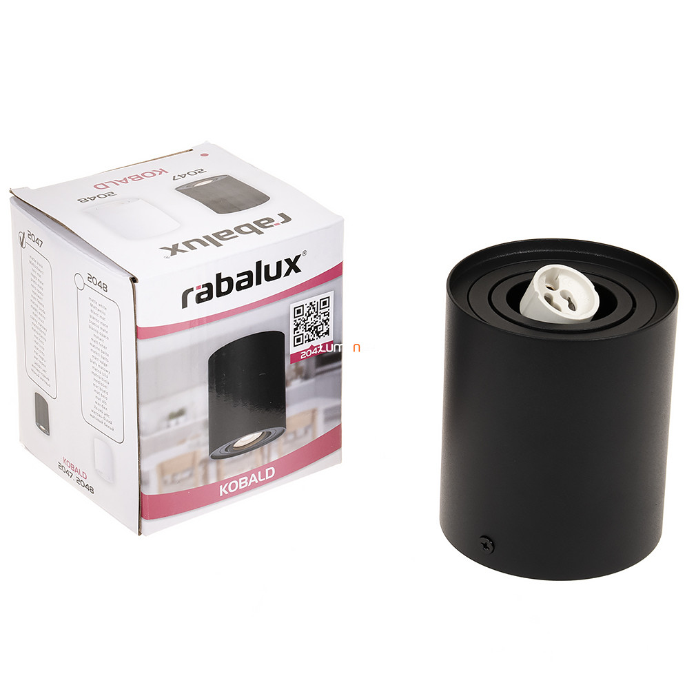 A Kobald Rábalux 2047 billenthető mennyezeti spot lámpa fekete színben, modern és funkcionális kialakítással készül. A mennyezetre szerelhető lámpatest egy darab GU10 foglalattal rendelkezik, amely lehetővé teszi cserélhető fényforrás alkalmazását. A lámpatest anyaga alumínium és fém, így strapabíró és hosszú élettartamú. A termék átmérője 90 mm, magassága 105 mm, tömege 0,33 kg. IP20-as védettsége beltéri használatra teszi alkalmassá. A lámpa nem tartalmaz fényforrást, így a kívánt teljesítményű és színhőmérsékletű izzó szabadon választható. A billenthető fej precíz irányítást biztosít a fény számára, így jól alkalmazható célzott megvilágításra lakóterekben vagy irodákban. A fekete színű felület modern stílust kölcsönöz a helyiségnek, miközben a lámpatest letisztult formavilága diszkréten illeszkedik a környezetbe.