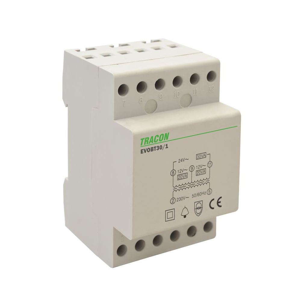 Biztonsági (csengő) transzformátor 230V/12-24V 30VA EVOBT30/1 Tracon