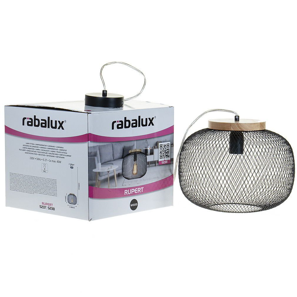 Bontott csomagolású Fém hálós függesztett lámpa fekete színben (Rupert)
