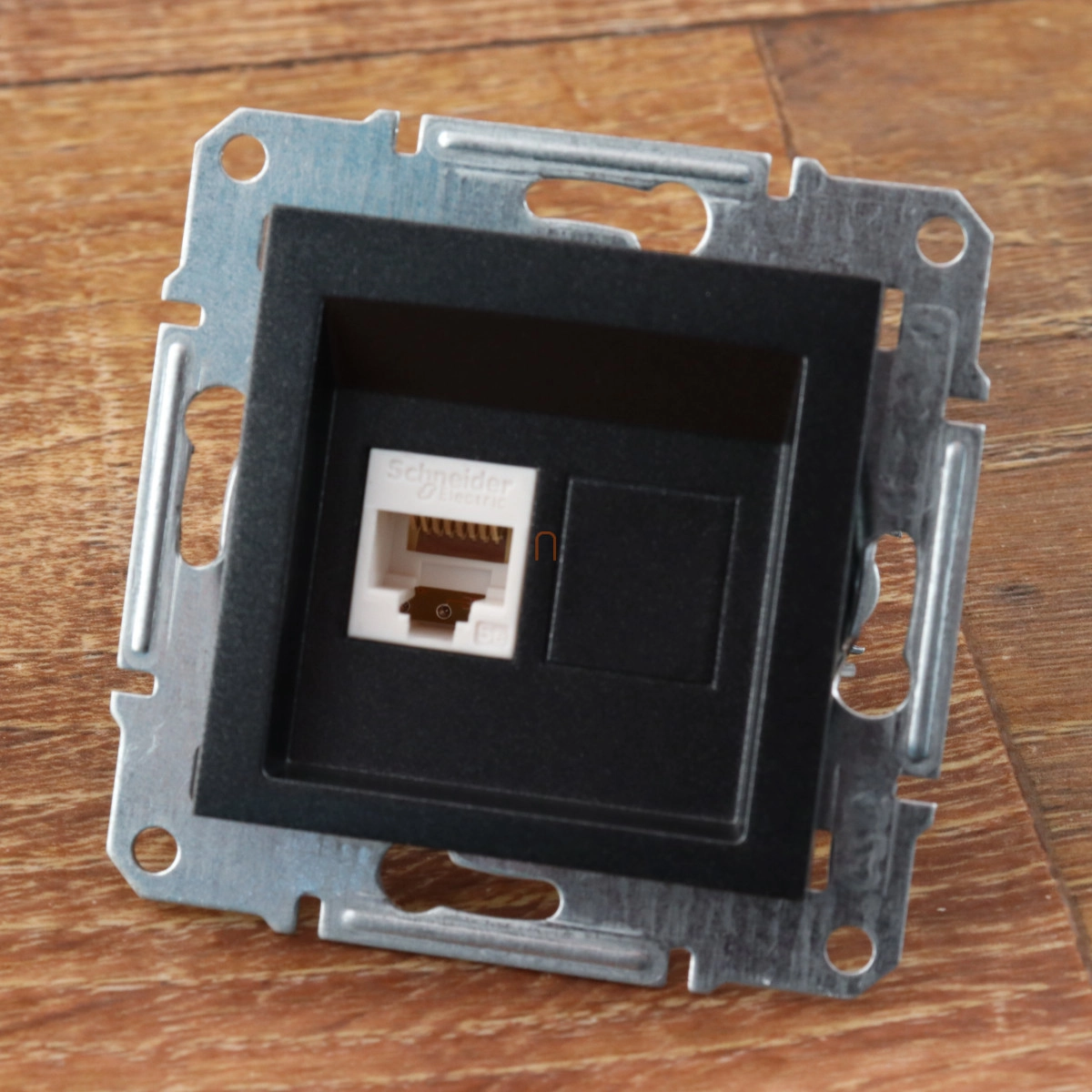 ASFORA 1xRJ45 Cat5e UTP aljzat, antracit EPH4300171 Schneider ASFORA 1xRJ45 Cat5e UTP aljzat, antracit. termékcsalád: Asfora - termék vagy komponens típusa: egyszeres adatátviteli aljzat - készülékalkalmazás: kommunikáció - eszköz bemutatása: keret nélkül - adatátviteli aljzat típus: RJ45 - a csomagolás típusa: flow-pack. Előnyök : Szakítson a hagyományokkal és a megszokásokkal, használjon színes szerelvényeket a különböző világítási és komfortfunkciókhoz is., Redőnyvezérlés, Jelzőfényes kapcsoló, Fényerőszabályzó. A csatlakozók széles választékának köszönhetően nem marad le semmiről és igazán önfeledten élvezheti szabadidejét, hiszen számos funkció szolgálja az Ön kényelmét:, TV/R/SAT aljzat, RJ45 adatcsatlakozó, Hangszórócsatlakozó. Amellett, hogy az Asfora termékek elegáns vonalvezetésükkel stílust adnak otthonának, megfelelnek az aktuális szabványoknak, masszív és időtálló anyagból készülnek., Csapfedeles csatlakozóaljzat, IP44-es csatlakozóaljzat.. Alkalmazások: Otthoni, irodai és közösségi épületekben..