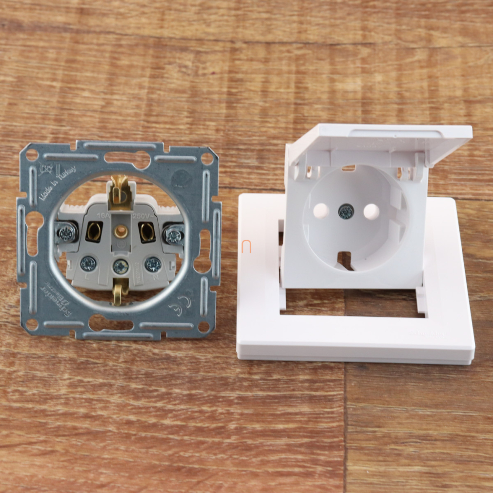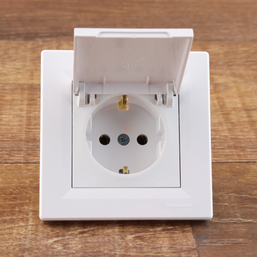 ASFORA 2P+F csatlakozóaljzat, csapfedeles, csavaros, kerettel, fehér EPH3100121 Schneider
