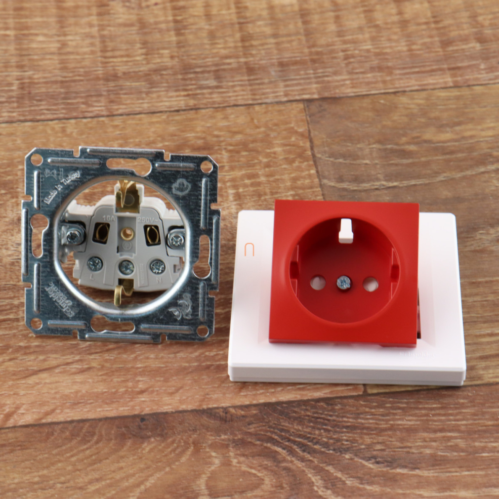 ASFORA 2P+F csatlakozóaljzat, (GYV) biztonsági zsalus, piros betét, csavaros, kerettel, fehér EPH2900521 Schneider