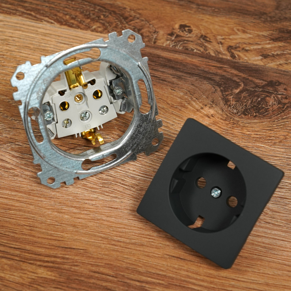 Bontott csomagolású Schneider Sedna 2P+F csatlakozóaljzat, csavaros bekötés, 16A, antracit (SDD114025)